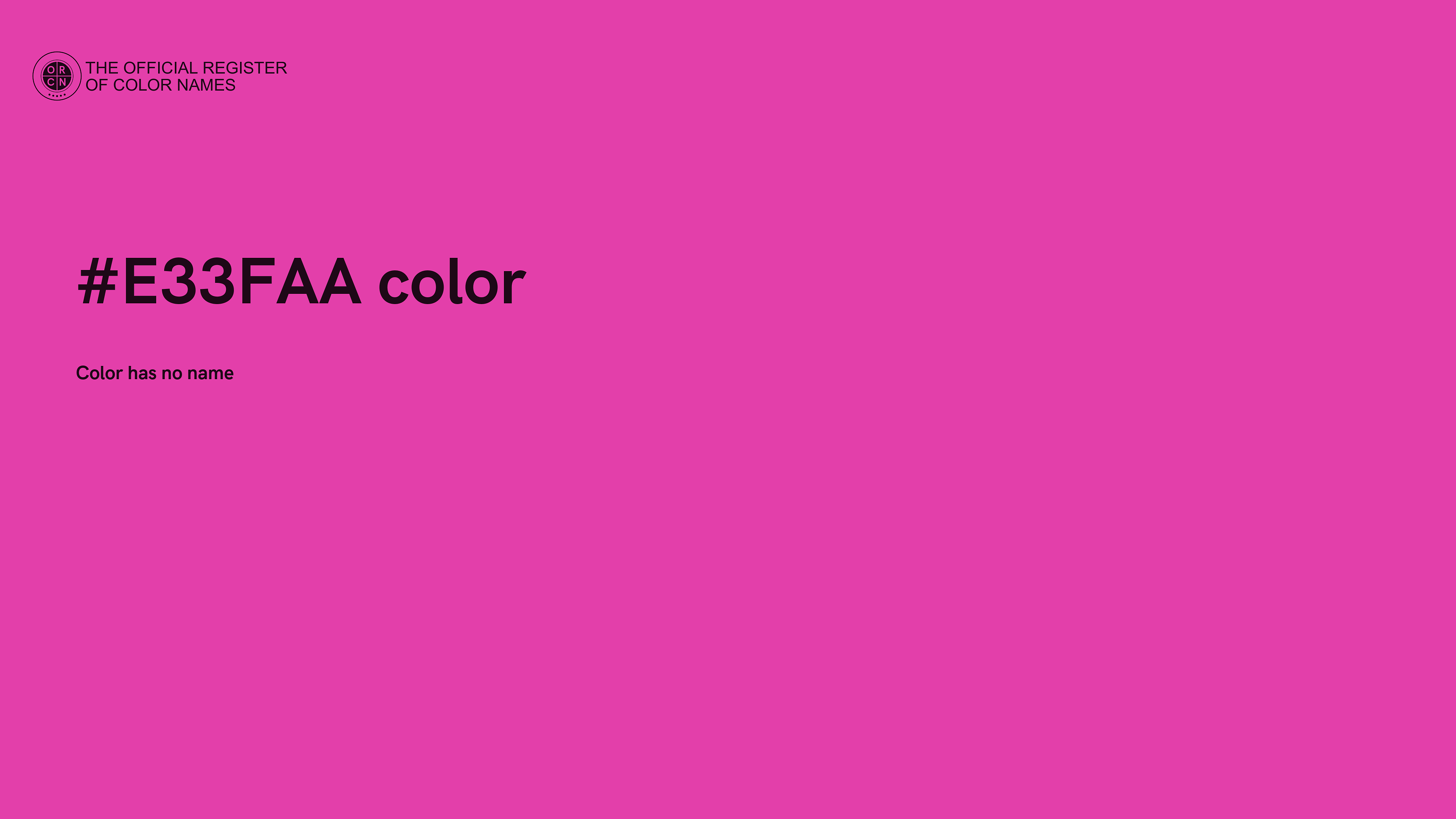 HEX code #E33FAA represent the color in hexadecimal format by combining three values – the amounts of Red, Green and Blue (RGB). Its RGB composition is 227, 63, 170 ( rgb(227, 63, 170) ), which breaks down into 89% of Red, 24.7% Green and 66.7% Blue.