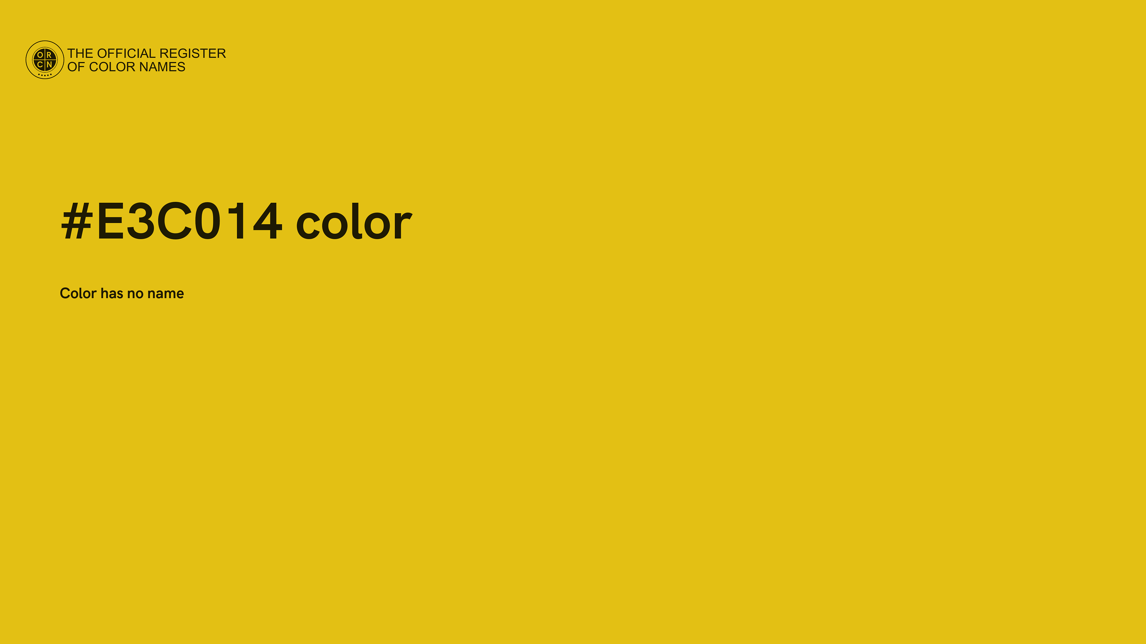 The digital color HEX #E3C014 belongs to the Yellow Color Family featuring High Saturation (Saturation Family) and Light (Brightness Family).