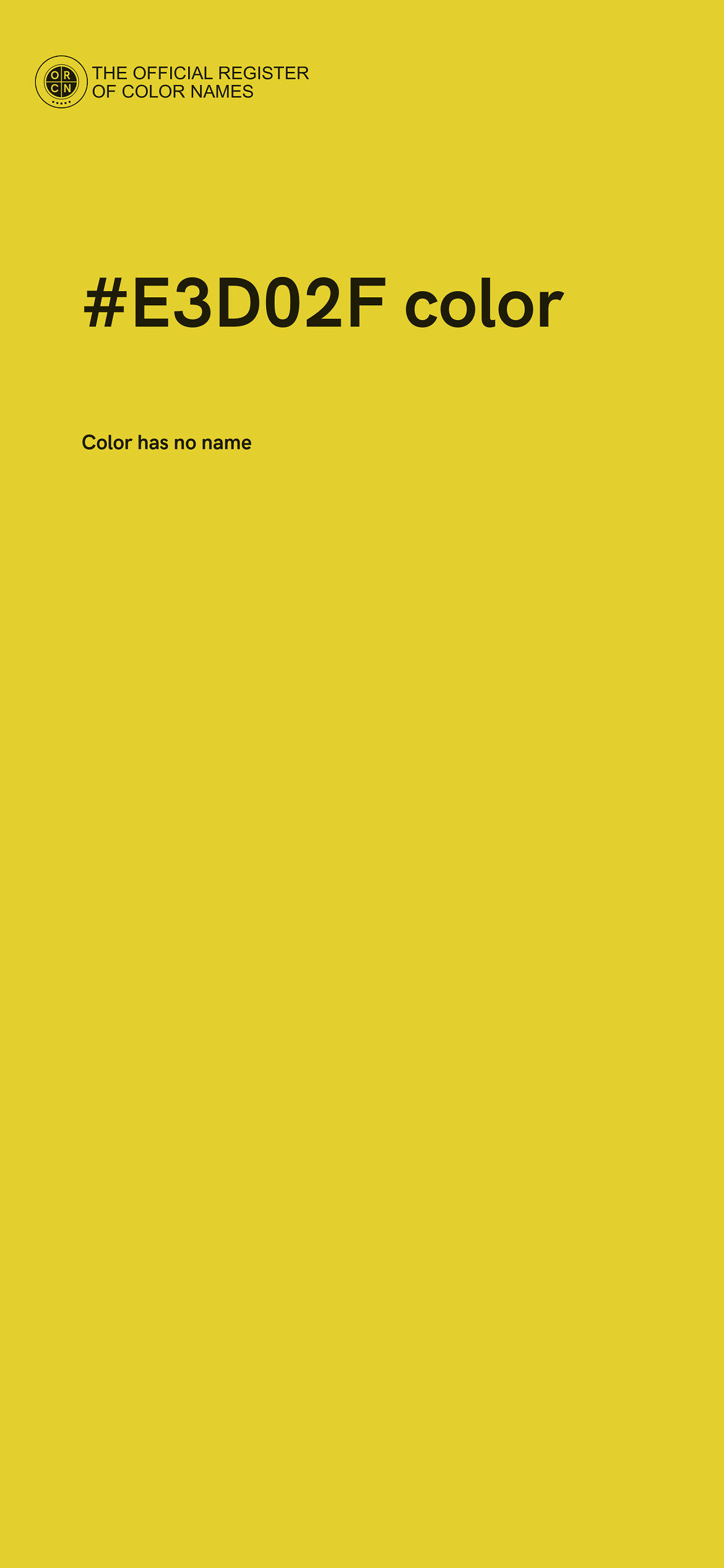 For printing in non digital world, #E3D02F is represented in CMYK as 0 Cyan, 7 Magenta, 71 Yellow, and 11 Black (Key) (C:0 M:7 Y:71 K:11).