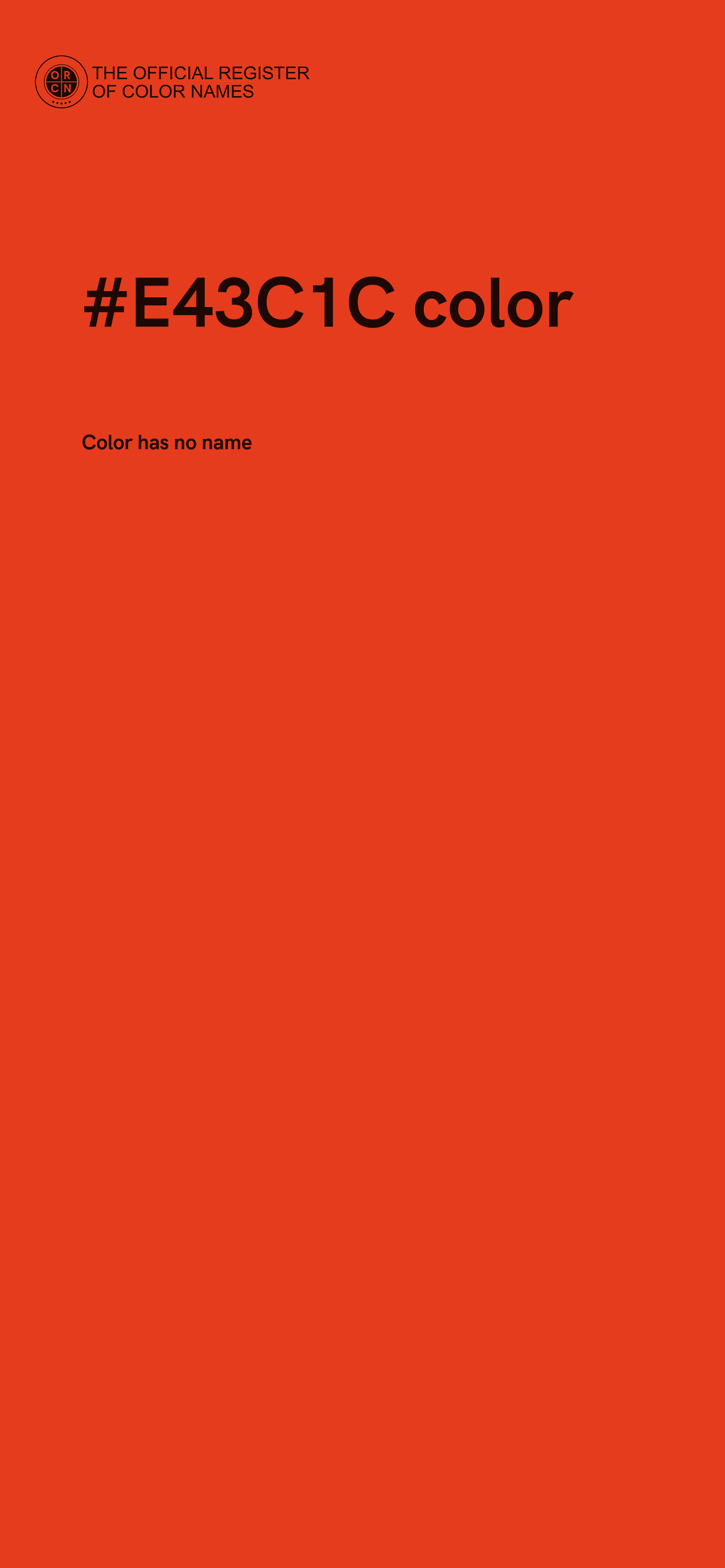The digital color HEX #E43C1C belongs to the Red Color Family featuring High Saturation (Saturation Family) and Light (Brightness Family).