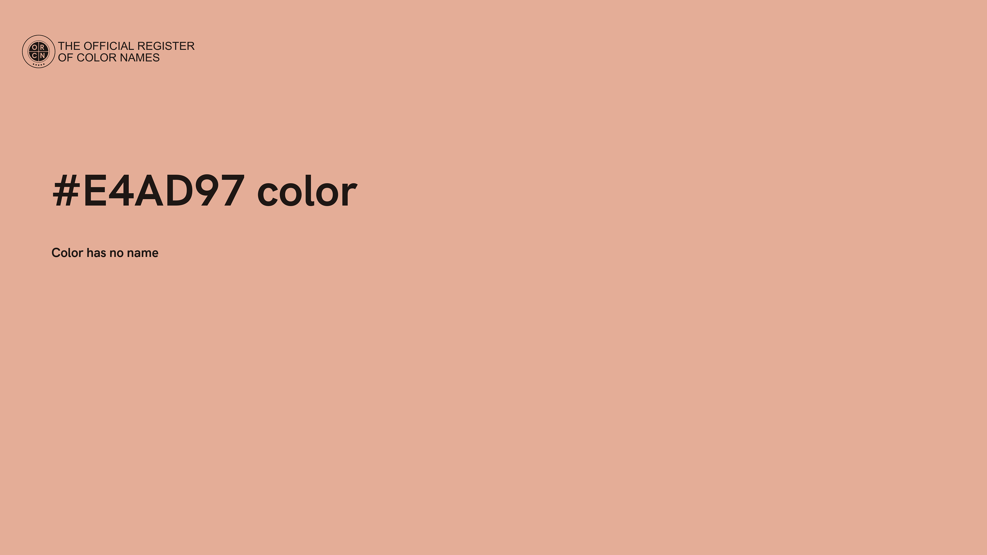 The digital color HEX #E4AD97 belongs to the Orange Color Family featuring Moderate Saturation (Saturation Family) and Very Light (Brightness Family).