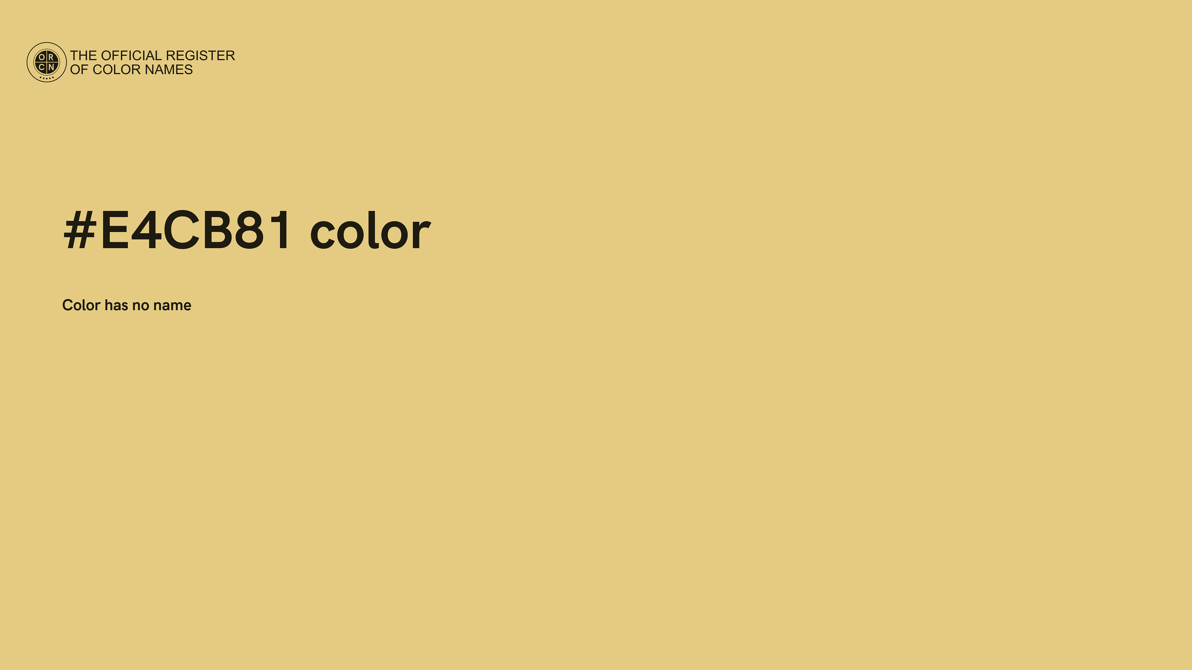 For printing in non digital world, #E4CB81 is represented in CMYK as 0 Cyan, 10 Magenta, 39 Yellow, and 11 Black (Key) (C:0 M:10 Y:39 K:11).