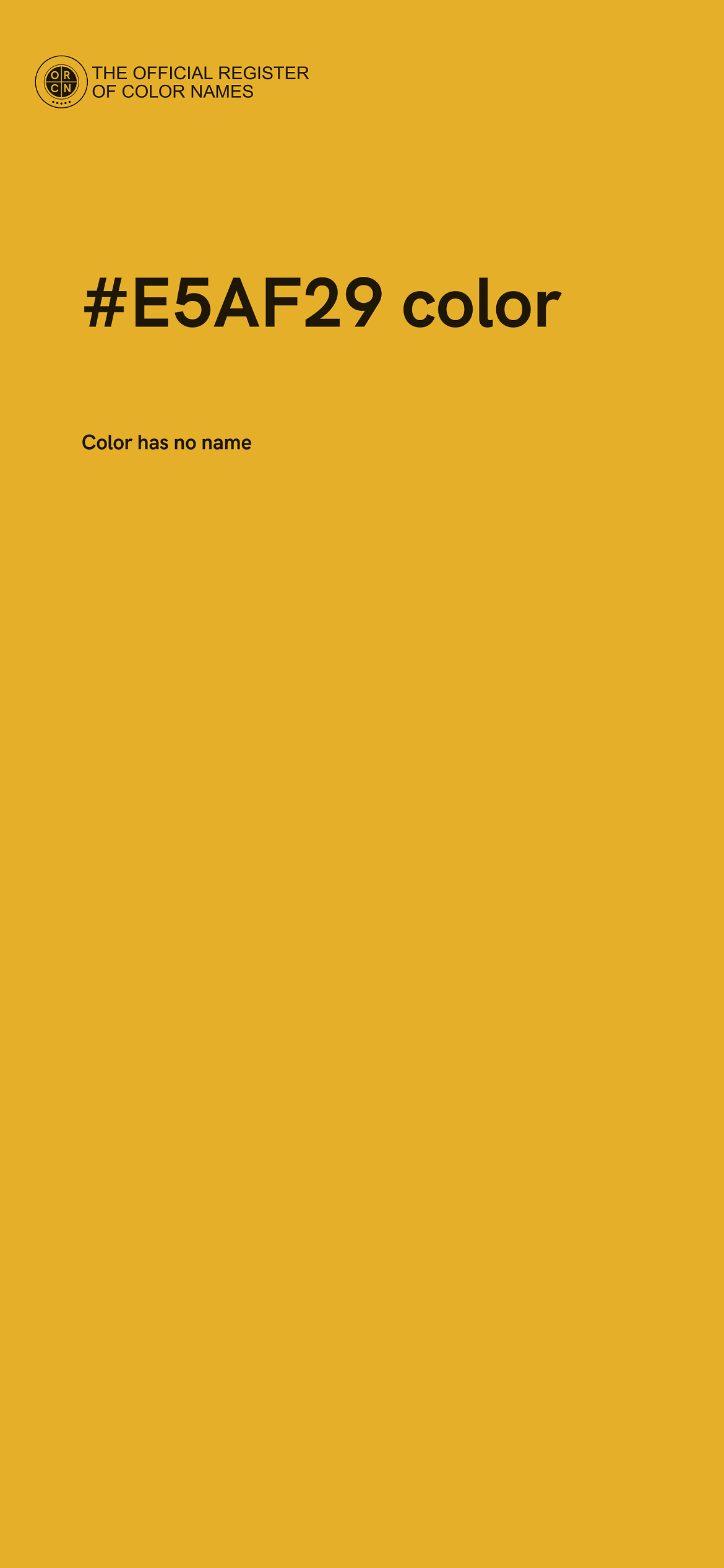 The digital color HEX #E5AF29 belongs to the Orange Color Family featuring High Saturation (Saturation Family) and Light (Brightness Family).