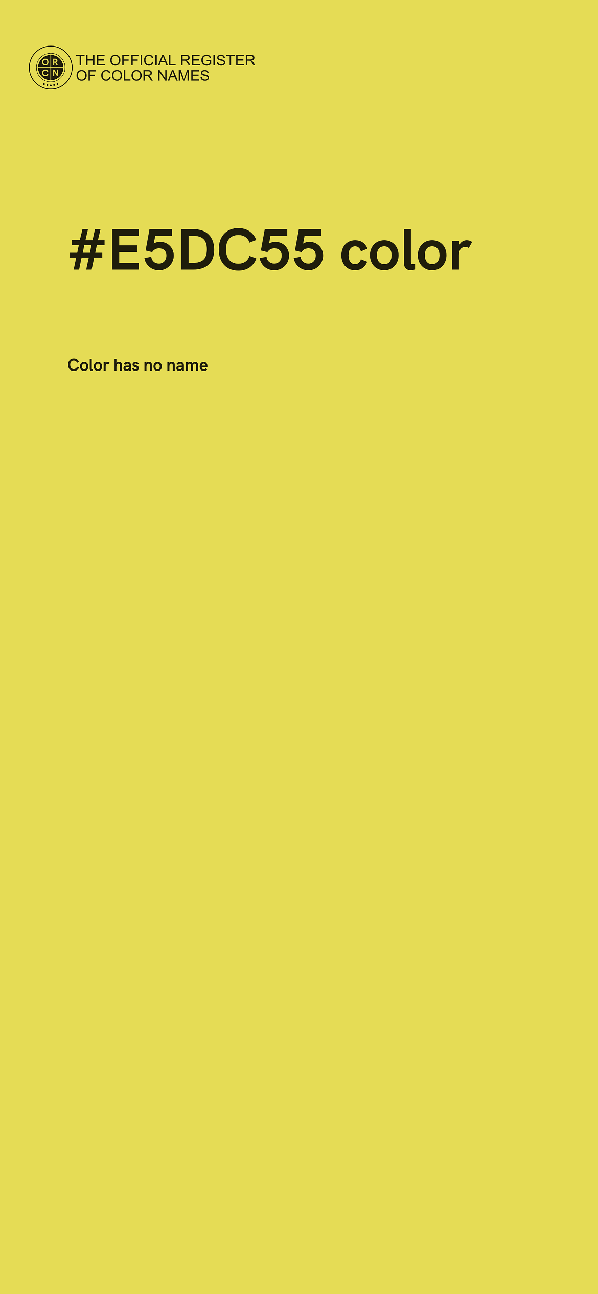 For printing in non digital world, #E5DC55 is represented in CMYK as 0 Cyan, 4 Magenta, 56 Yellow, and 10 Black (Key) (C:0 M:4 Y:56 K:10).