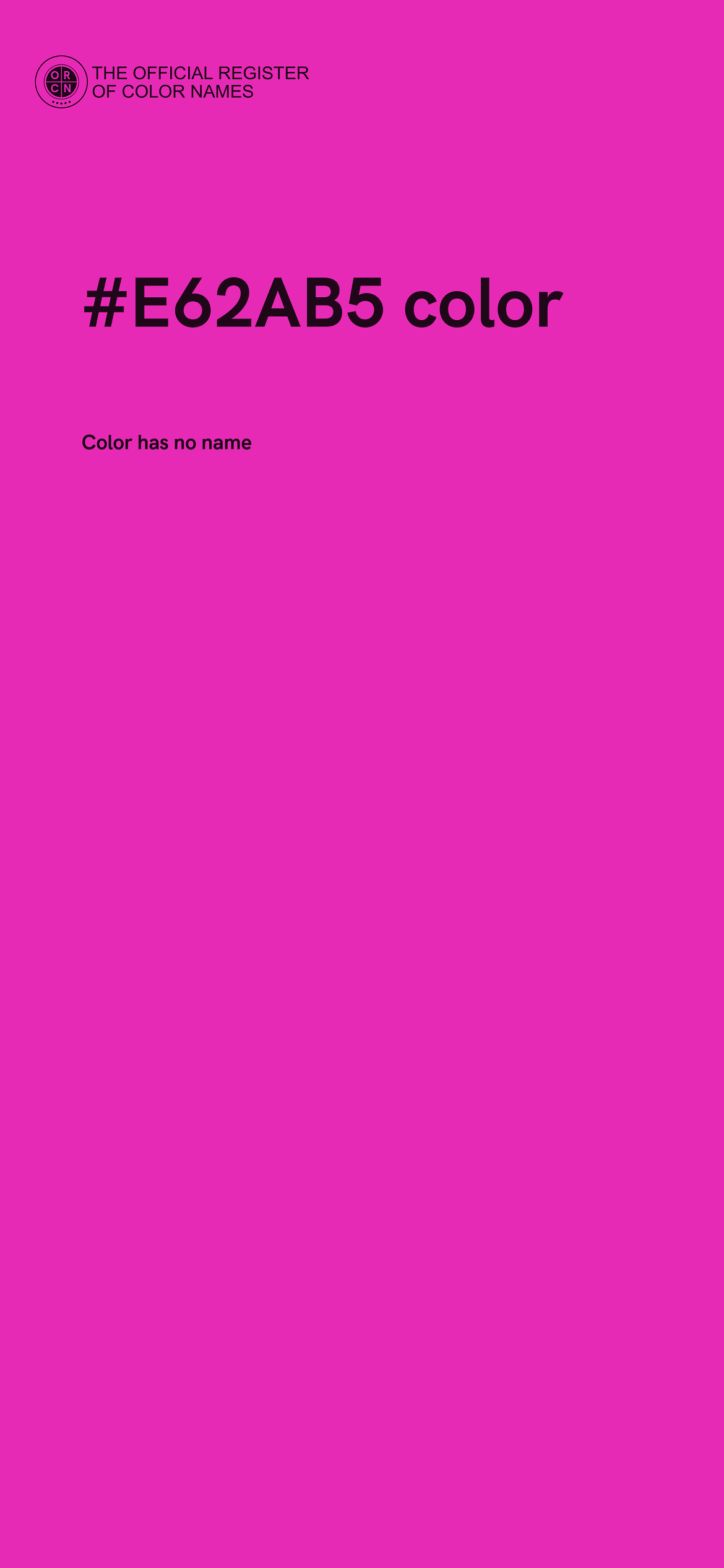 The digital color HEX #E62AB5 belongs to the Rose Color Family featuring High Saturation (Saturation Family) and Light (Brightness Family).