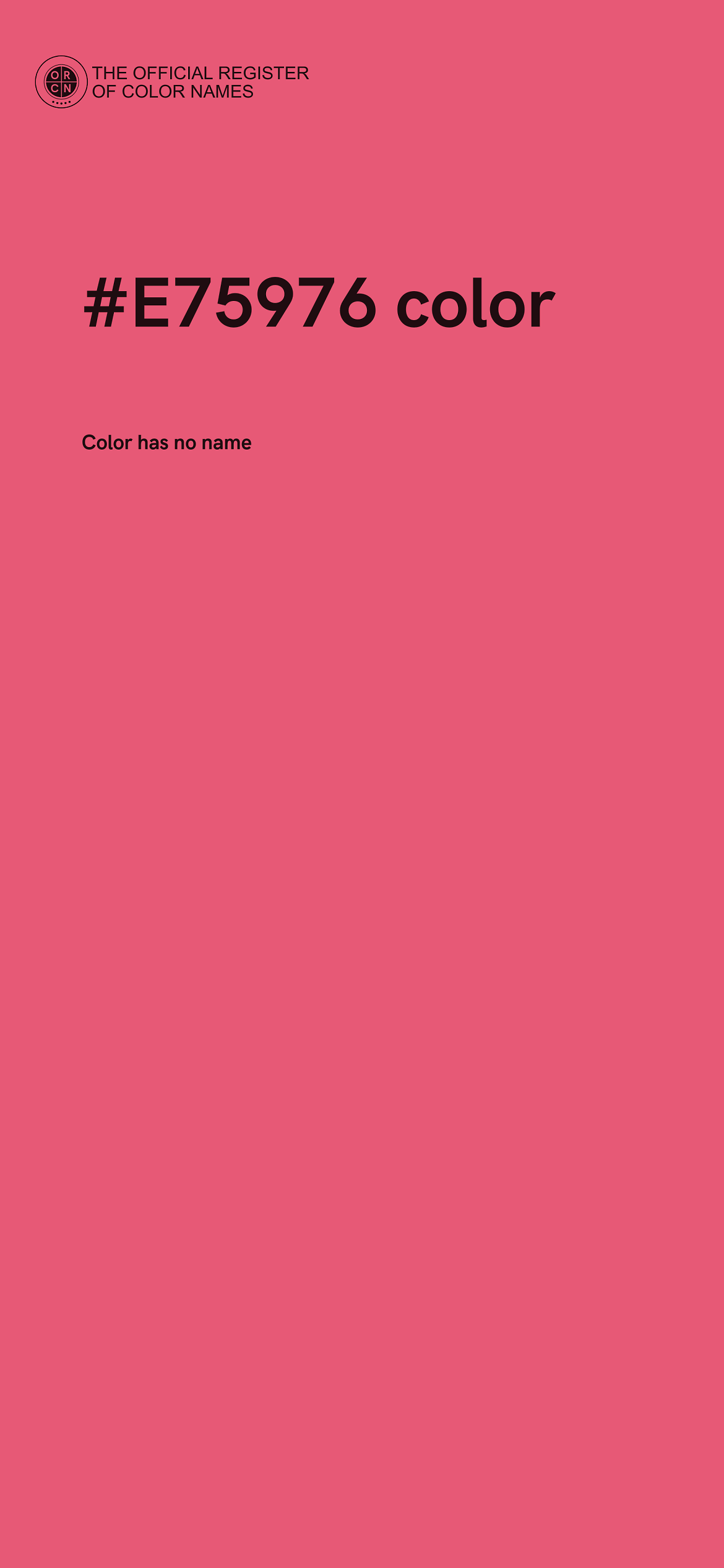 The digital color HEX #E75976 belongs to the Red Color Family featuring High Saturation (Saturation Family) and Very Light (Brightness Family).