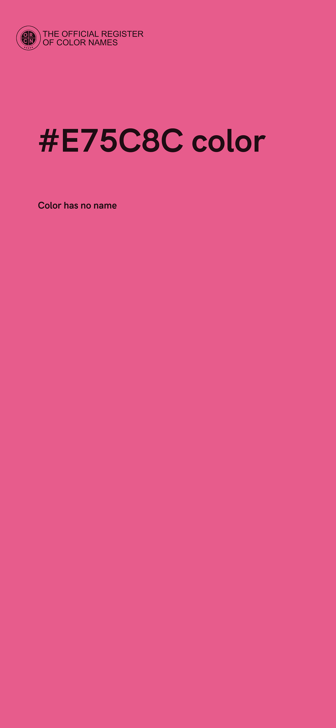 For printing in non digital world, #E75C8C is represented in CMYK as 0 Cyan, 55 Magenta, 36 Yellow, and 9 Black (Key) (C:0 M:55 Y:36 K:9).