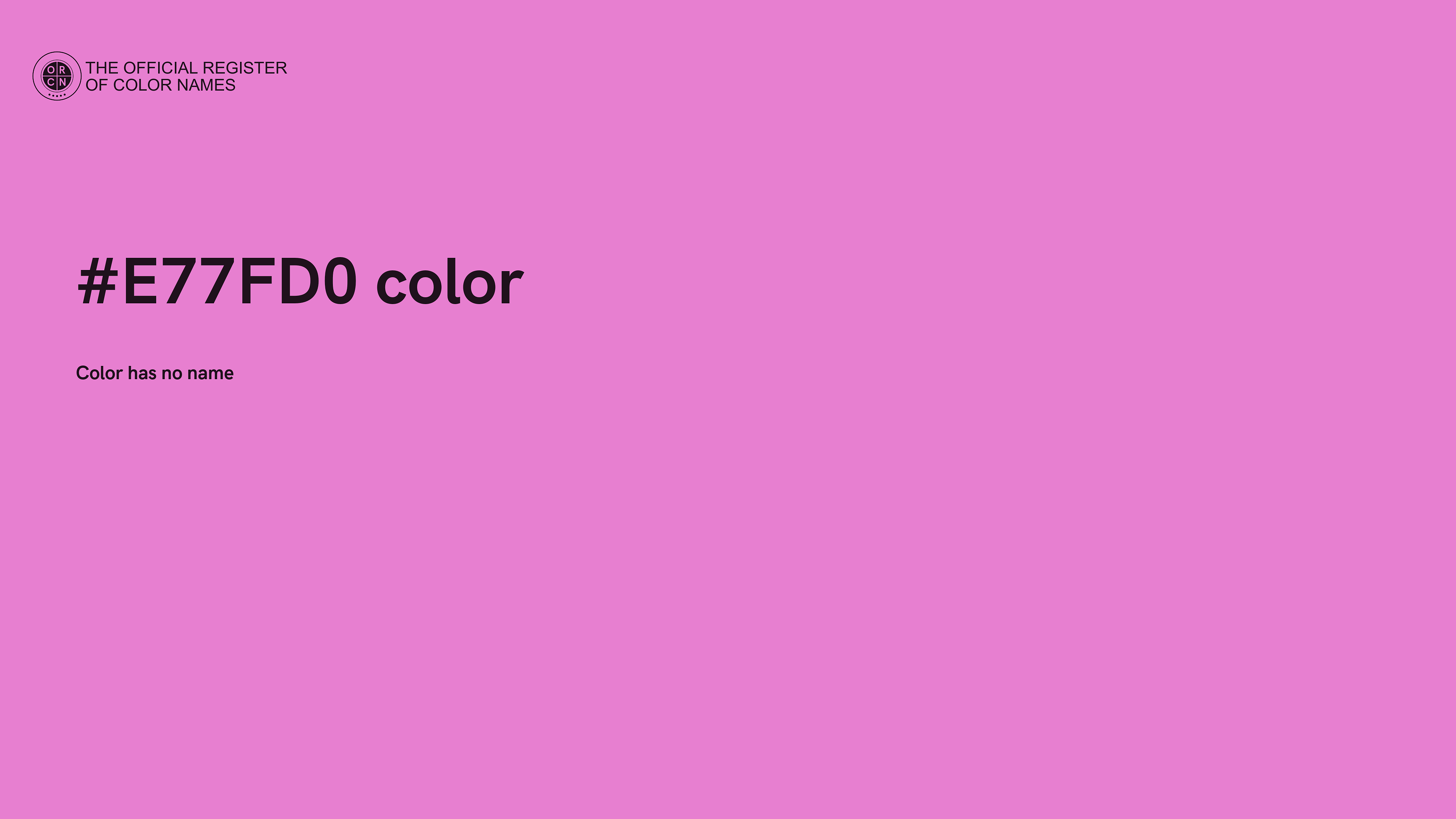 HEX code #E77FD0 represent the color in hexadecimal format by combining three values – the amounts of Red, Green and Blue (RGB). Its RGB composition is 231, 127, 208 ( rgb(231, 127, 208) ), which breaks down into 90.6% of Red, 49.8% Green and 81.6% Blue.