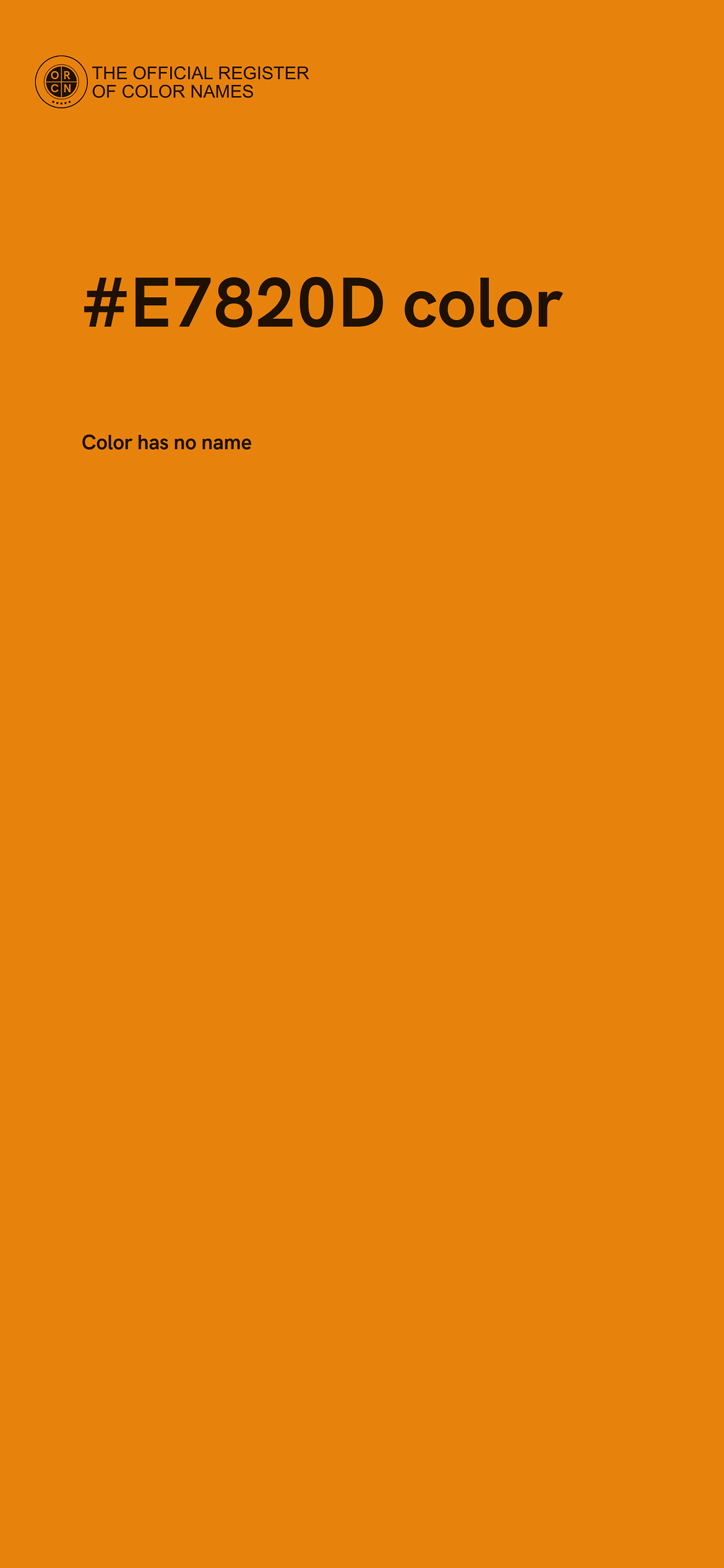 The digital color HEX #E7820D belongs to the Orange Color Family featuring Full Saturation (Saturation Family) and Light (Brightness Family).