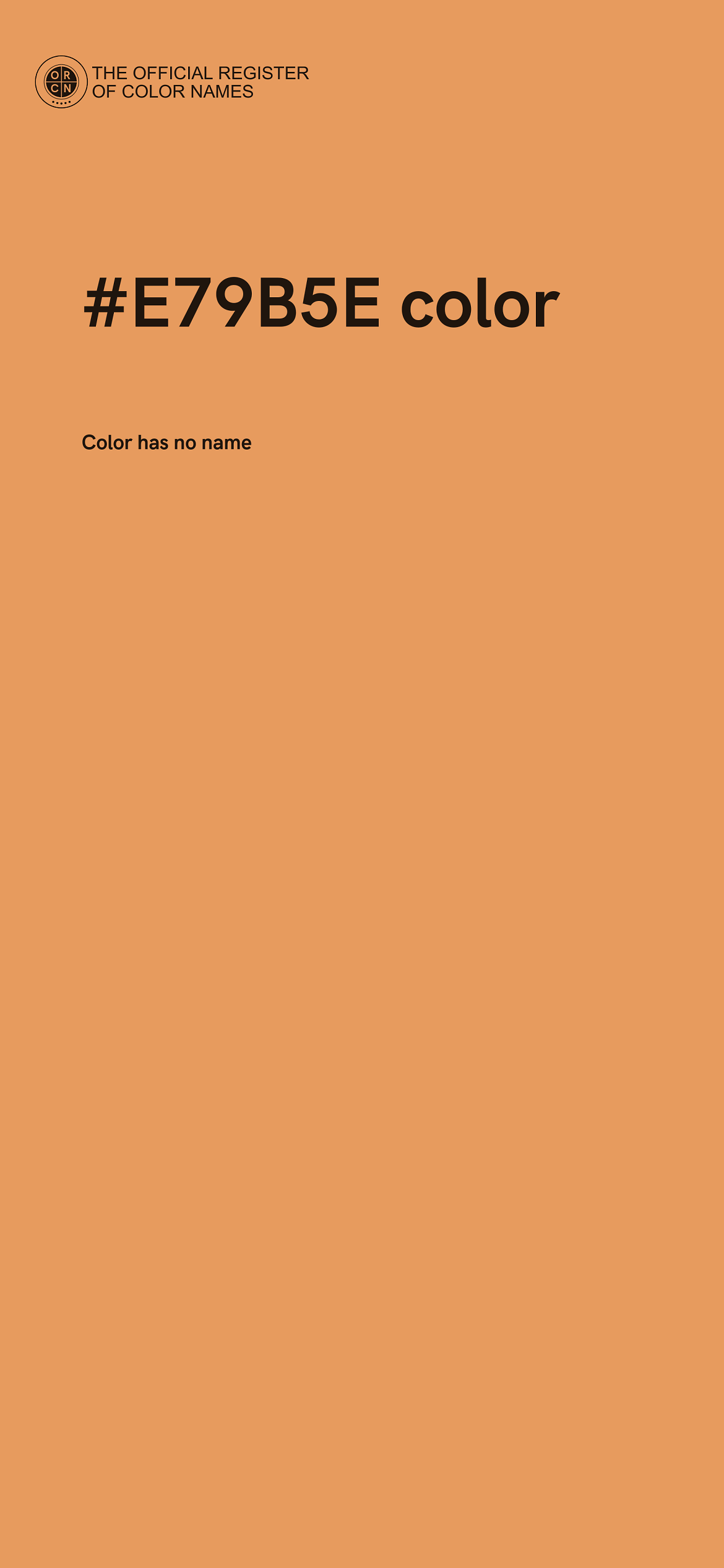For printing in non digital world, #E79B5E is represented in CMYK as 0 Cyan, 30 Magenta, 54 Yellow, and 9 Black (Key) (C:0 M:30 Y:54 K:9).
