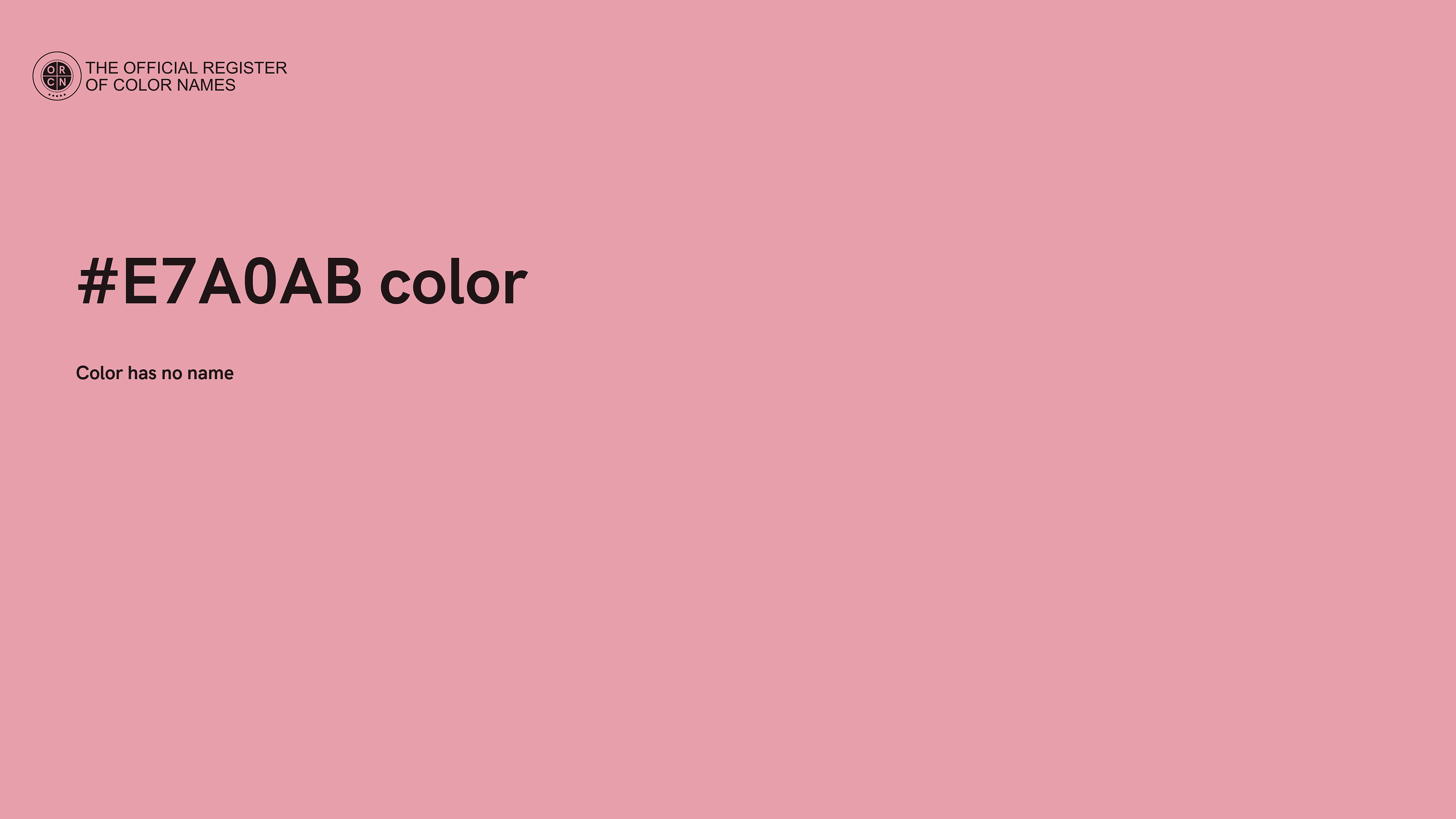 The digital color HEX #E7A0AB belongs to the Red Color Family featuring High Saturation (Saturation Family) and Very Light (Brightness Family).