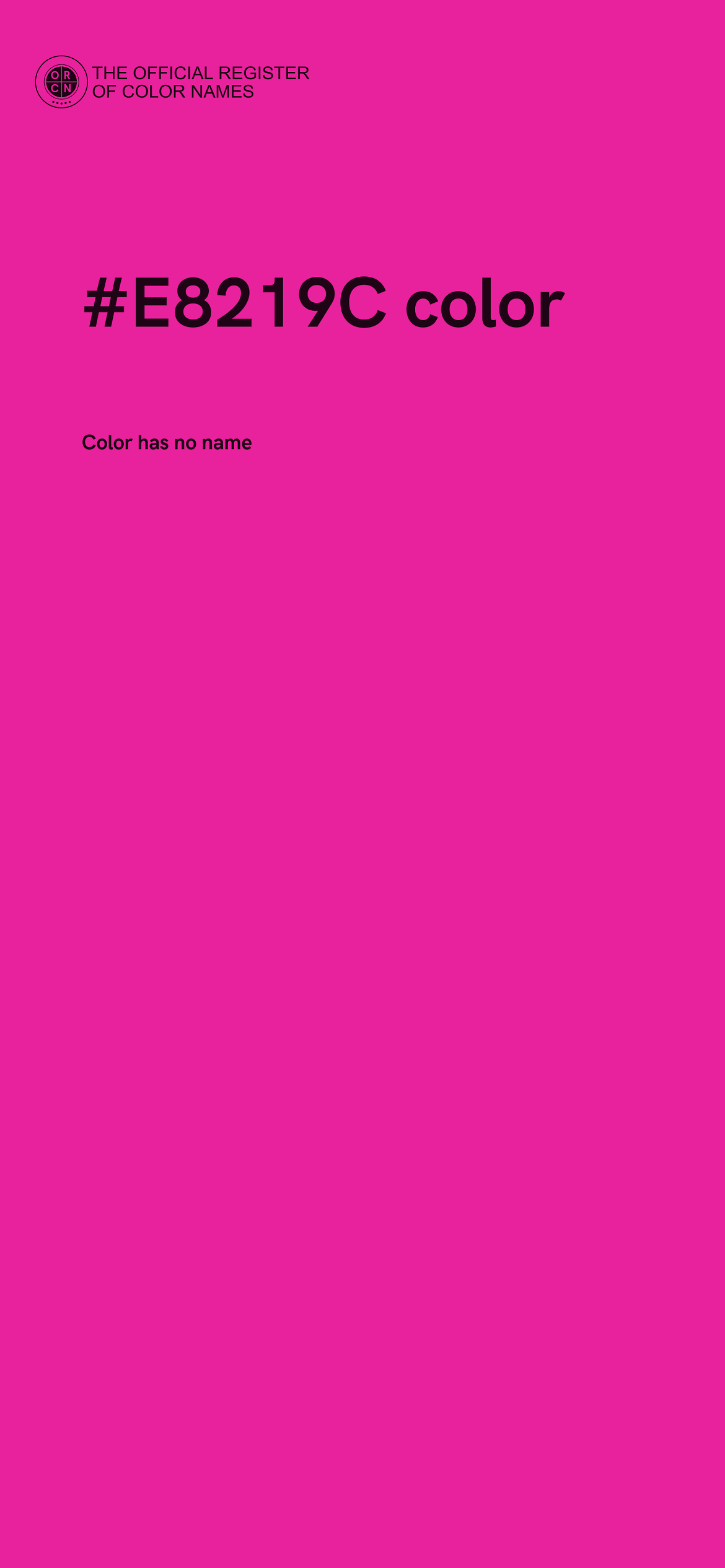 For printing in non digital world, #E8219C is represented in CMYK as 0 Cyan, 78 Magenta, 30 Yellow, and 9 Black (Key) (C:0 M:78 Y:30 K:9).