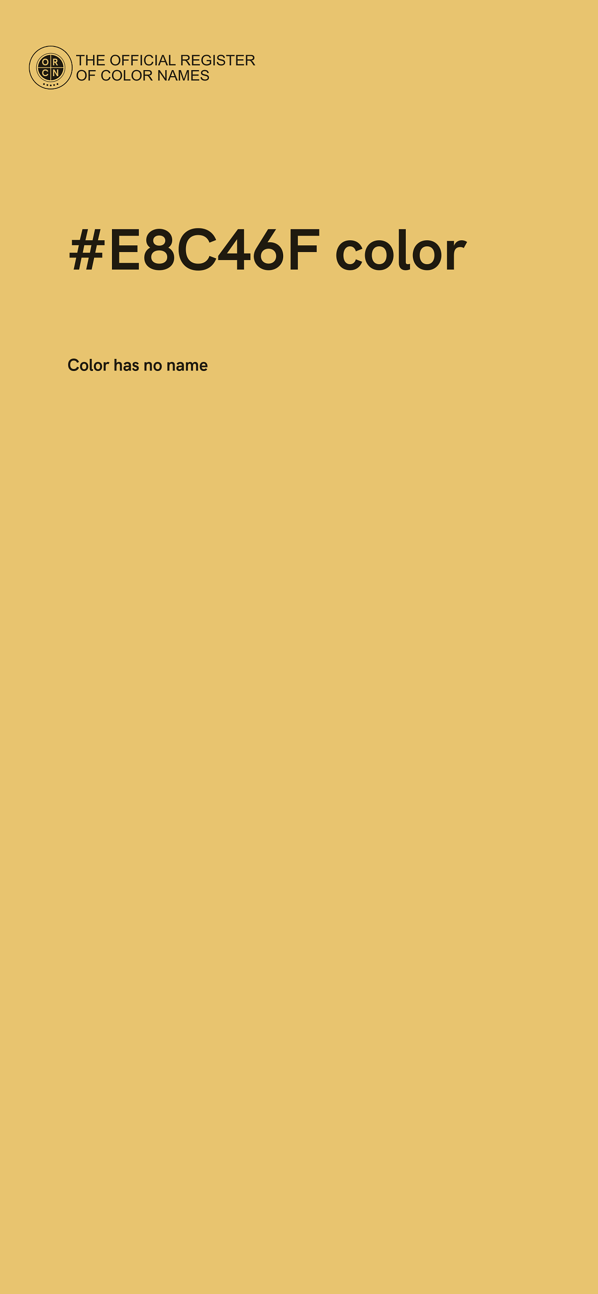 For printing in non digital world, #E8C46F is represented in CMYK as 0 Cyan, 14 Magenta, 47 Yellow, and 9 Black (Key) (C:0 M:14 Y:47 K:9).