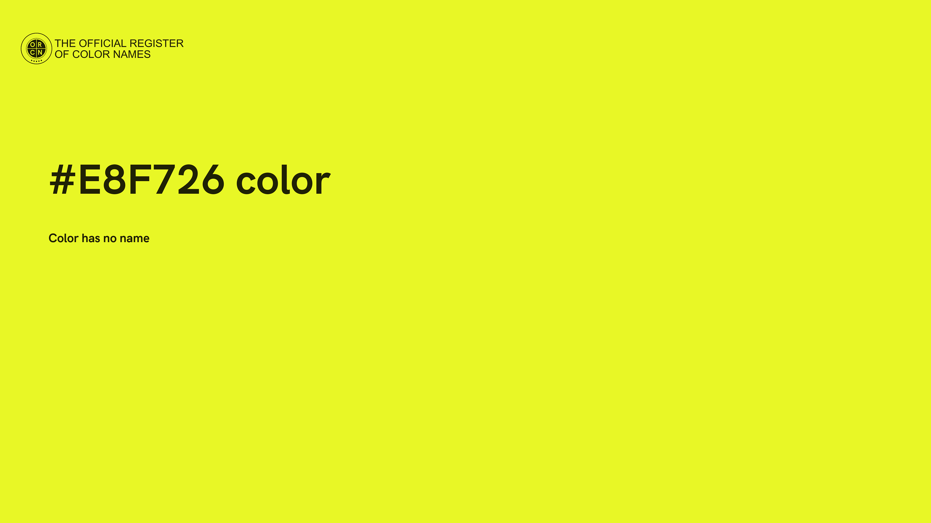 For printing in non digital world, #E8F726 is represented in CMYK as 6 Cyan, 0 Magenta, 82 Yellow, and 3 Black (Key) (C:6 M:0 Y:82 K:3).