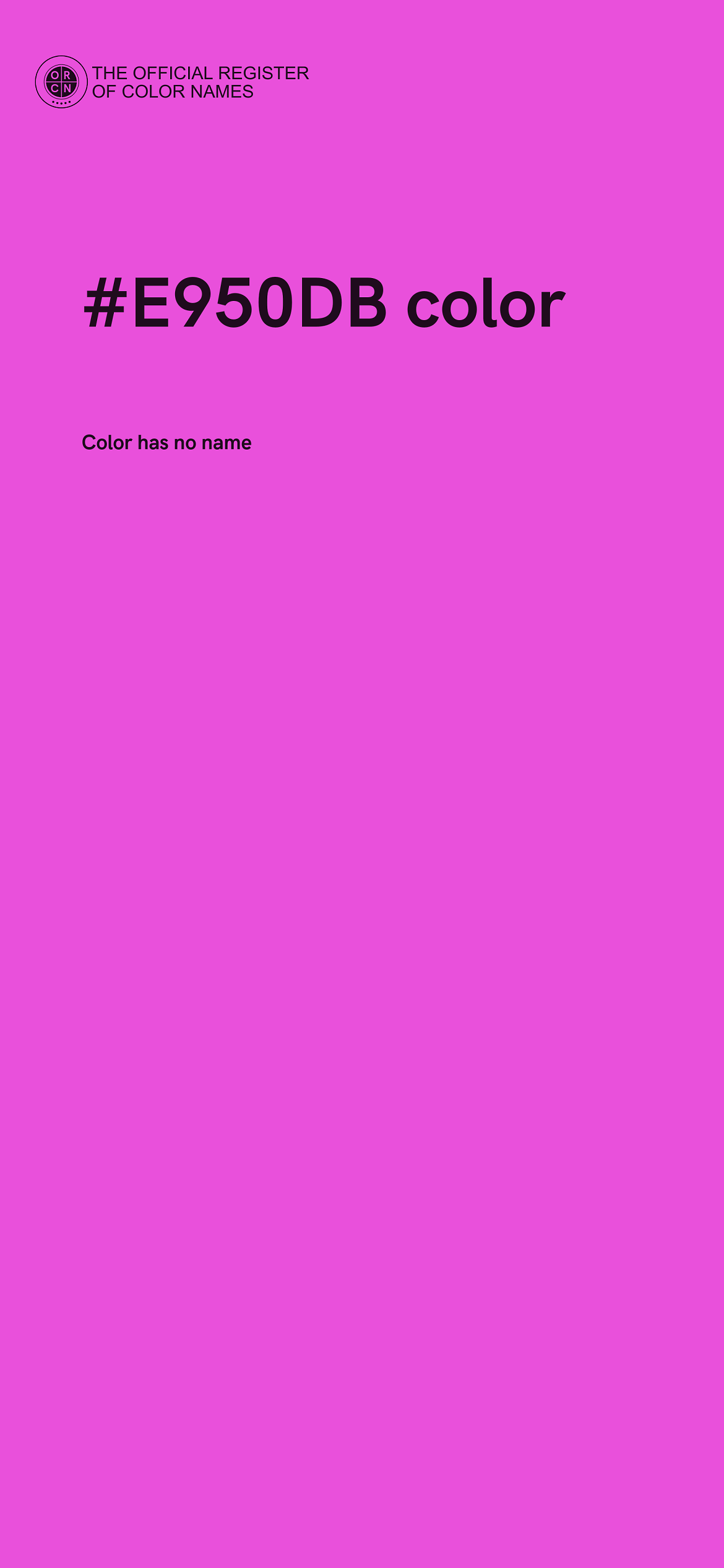 For printing in non digital world, #E950DB is represented in CMYK as 0 Cyan, 60 Magenta, 5 Yellow, and 9 Black (Key) (C:0 M:60 Y:5 K:9).