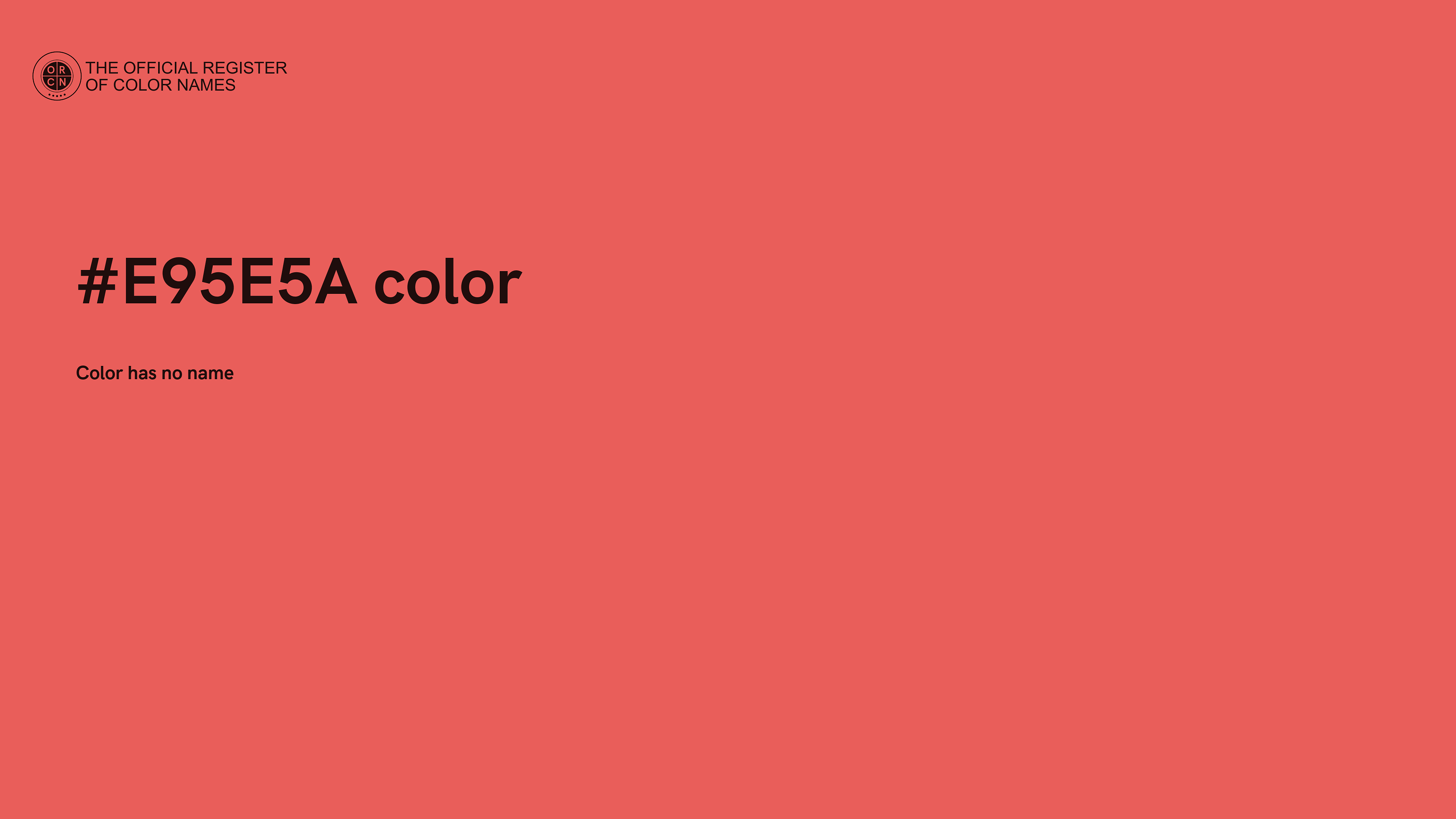 The digital color HEX #E95E5A belongs to the Red Color Family featuring High Saturation (Saturation Family) and Very Light (Brightness Family).