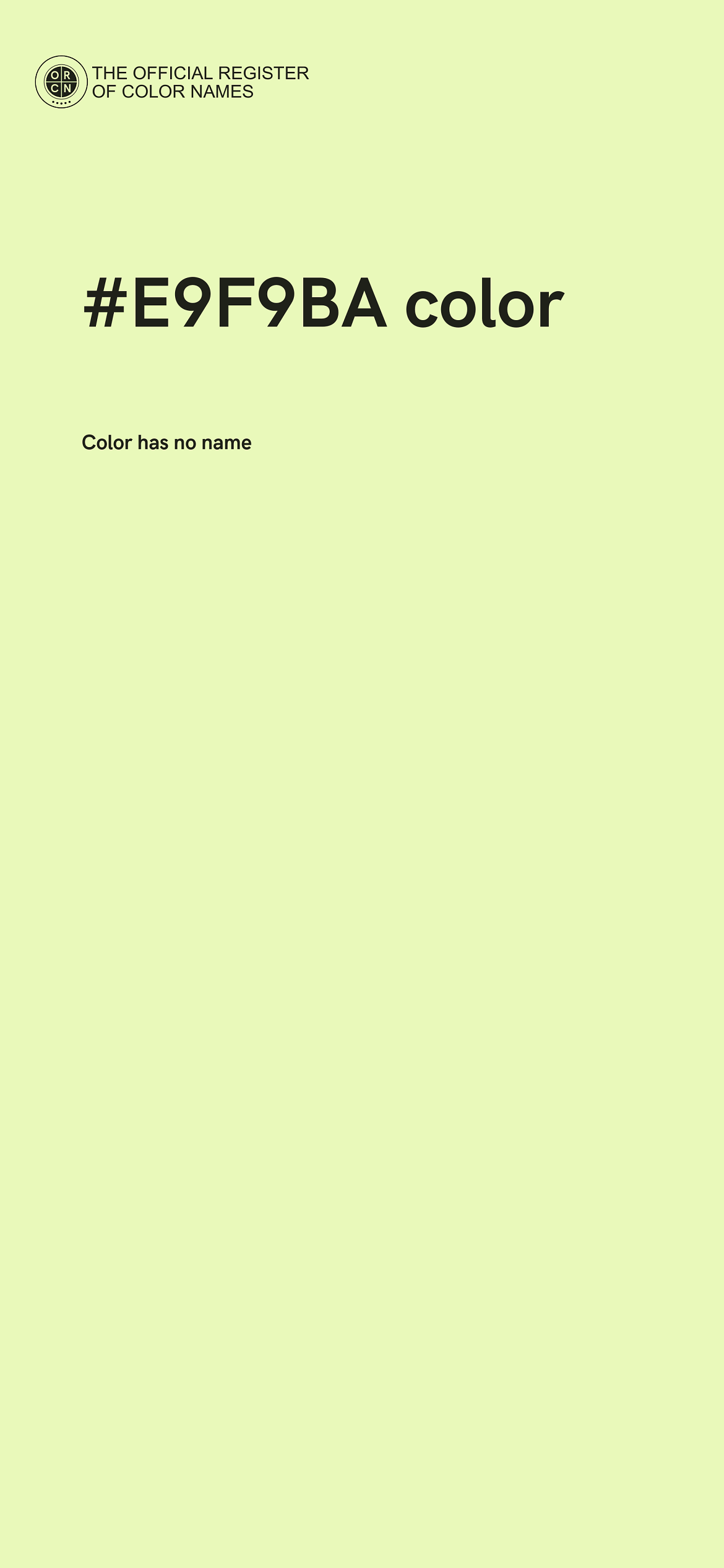 The digital color HEX #E9F9BA belongs to the Chartreuse Color Family featuring High Saturation (Saturation Family) and Luminous (Brightness Family).