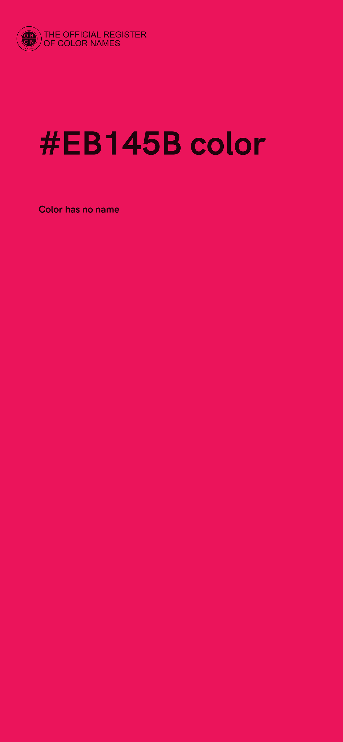 HEX code #EB145B represent the color in hexadecimal format by combining three values – the amounts of Red, Green and Blue (RGB). Its RGB composition is 235, 20, 91 ( rgb(235, 20, 91) ), which breaks down into 92.2% of Red, 7.8% Green and 35.7% Blue.