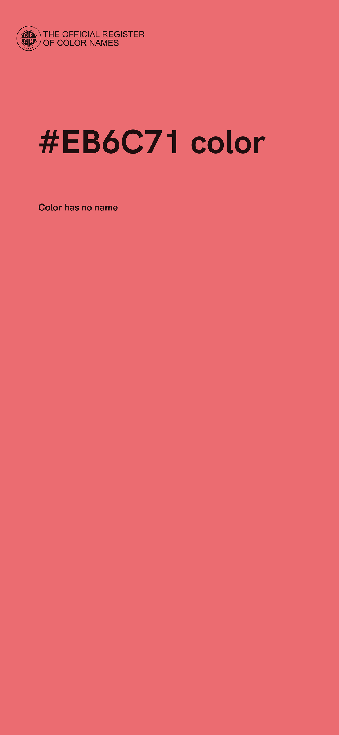 For printing in non digital world, #EB6C71 is represented in CMYK as 0 Cyan, 50 Magenta, 48 Yellow, and 8 Black (Key) (C:0 M:50 Y:48 K:8).