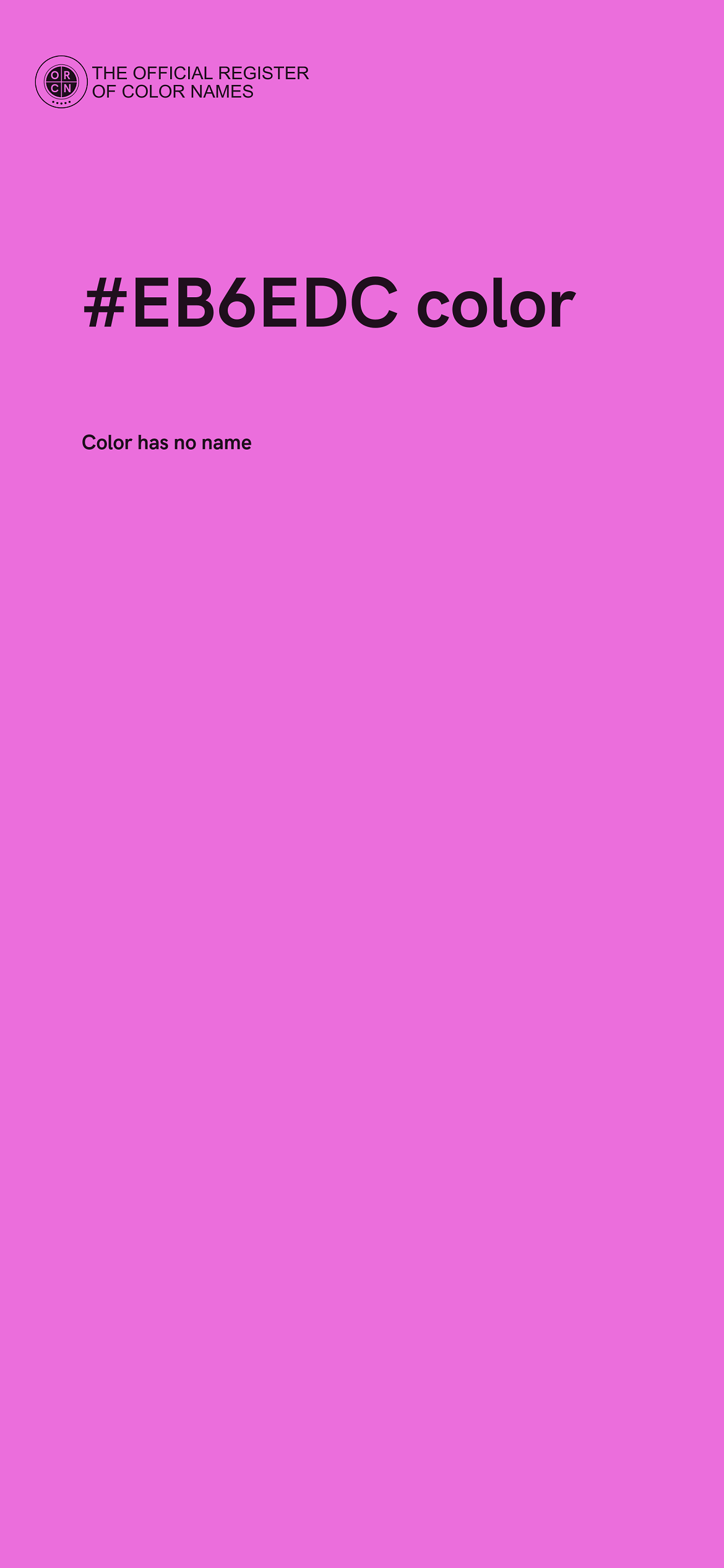 The digital color HEX #EB6EDC belongs to the Magenta Color Family featuring High Saturation (Saturation Family) and Very Light (Brightness Family).