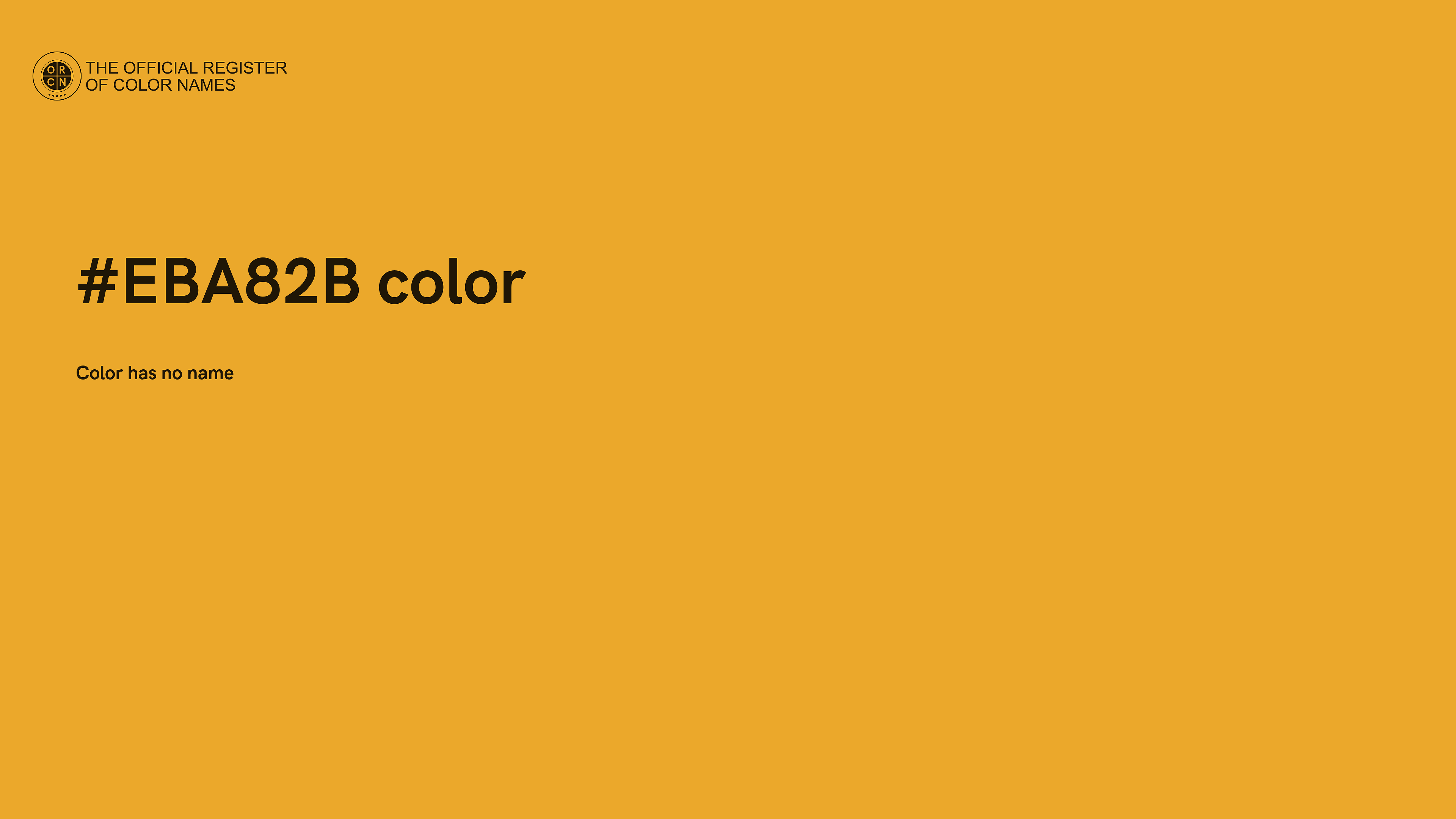 For printing in non digital world, #EBA82B is represented in CMYK as 0 Cyan, 26 Magenta, 75 Yellow, and 8 Black (Key) (C:0 M:26 Y:75 K:8).