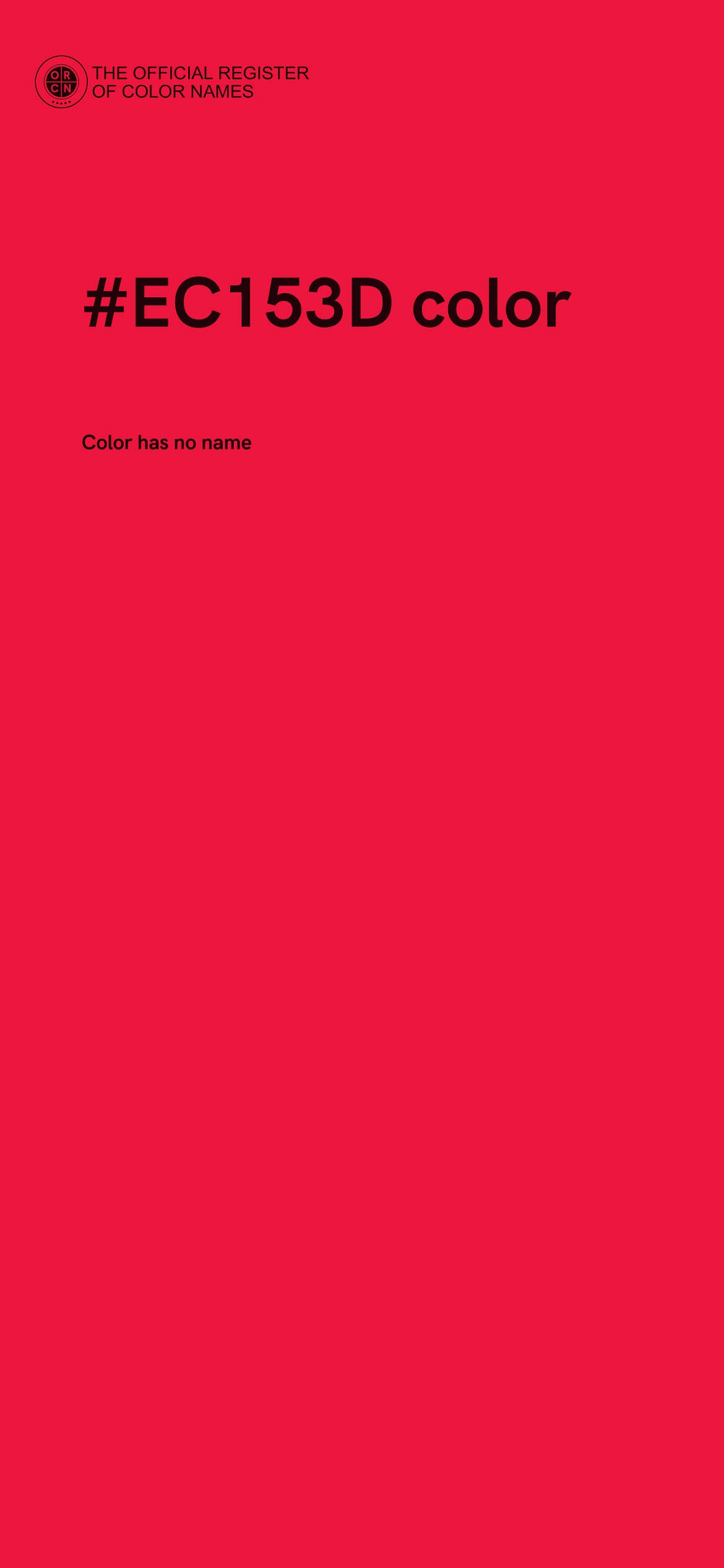The digital color HEX #EC153D belongs to the Red Color Family featuring Full Saturation (Saturation Family) and Light (Brightness Family).