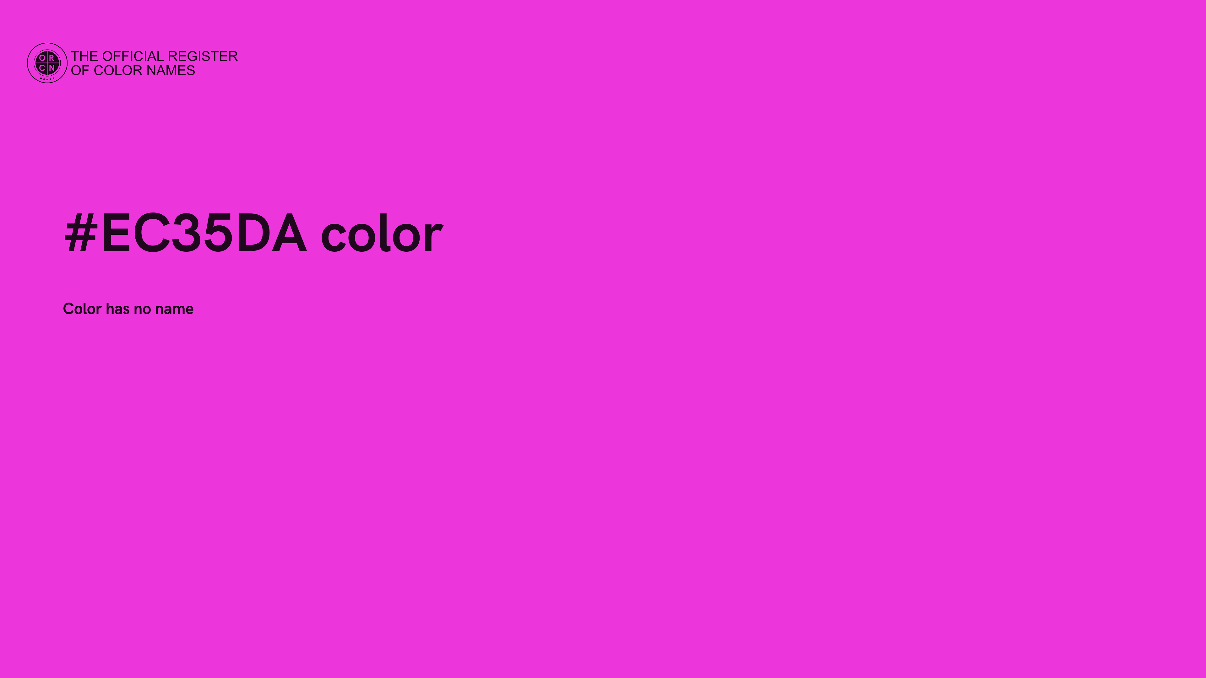 The digital color HEX #EC35DA belongs to the Magenta Color Family featuring High Saturation (Saturation Family) and Light (Brightness Family).