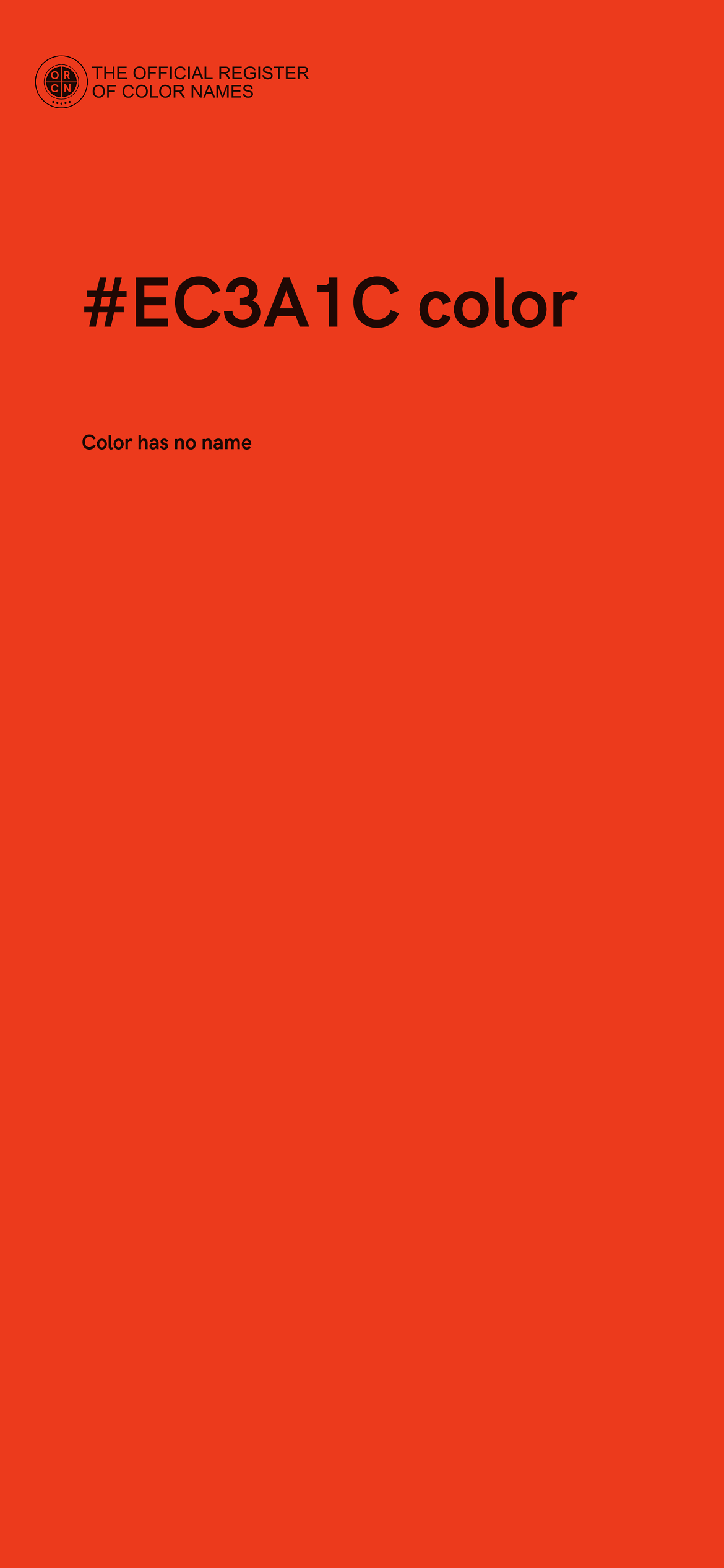 The digital color HEX #EC3A1C belongs to the Red Color Family featuring Full Saturation (Saturation Family) and Light (Brightness Family).