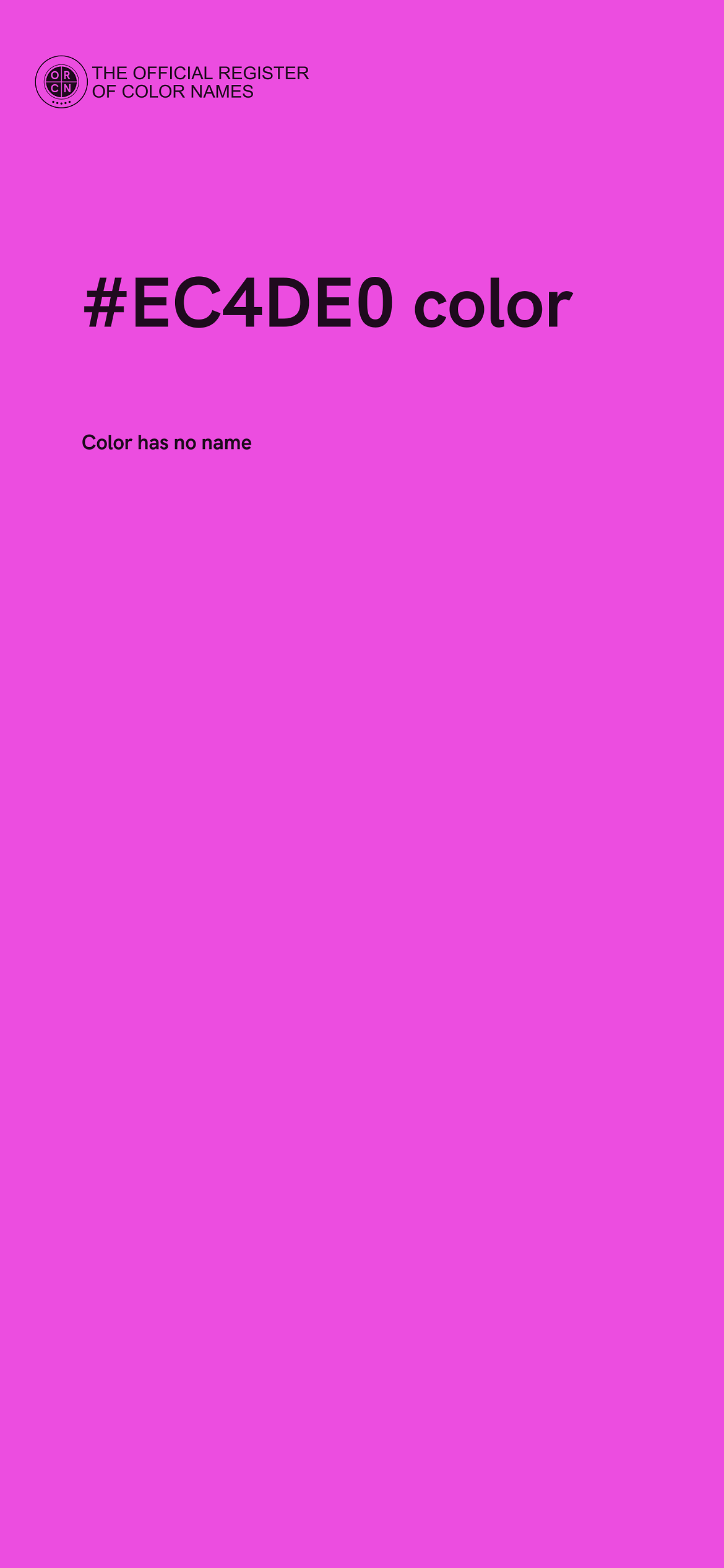 The digital color HEX #EC4DE0 belongs to the Magenta Color Family featuring High Saturation (Saturation Family) and Very Light (Brightness Family).