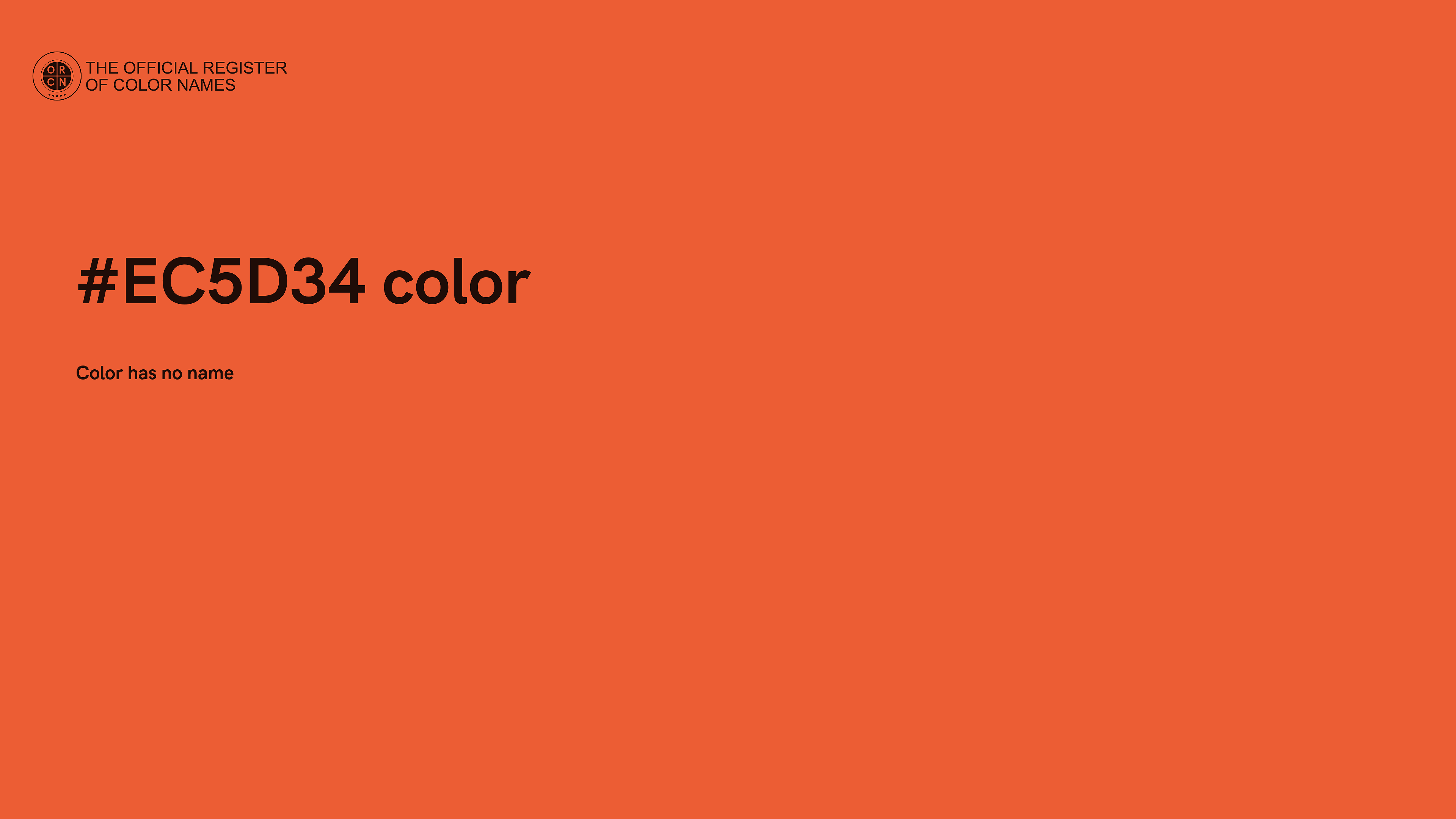 The digital color HEX #EC5D34 belongs to the Red Color Family featuring High Saturation (Saturation Family) and Light (Brightness Family).