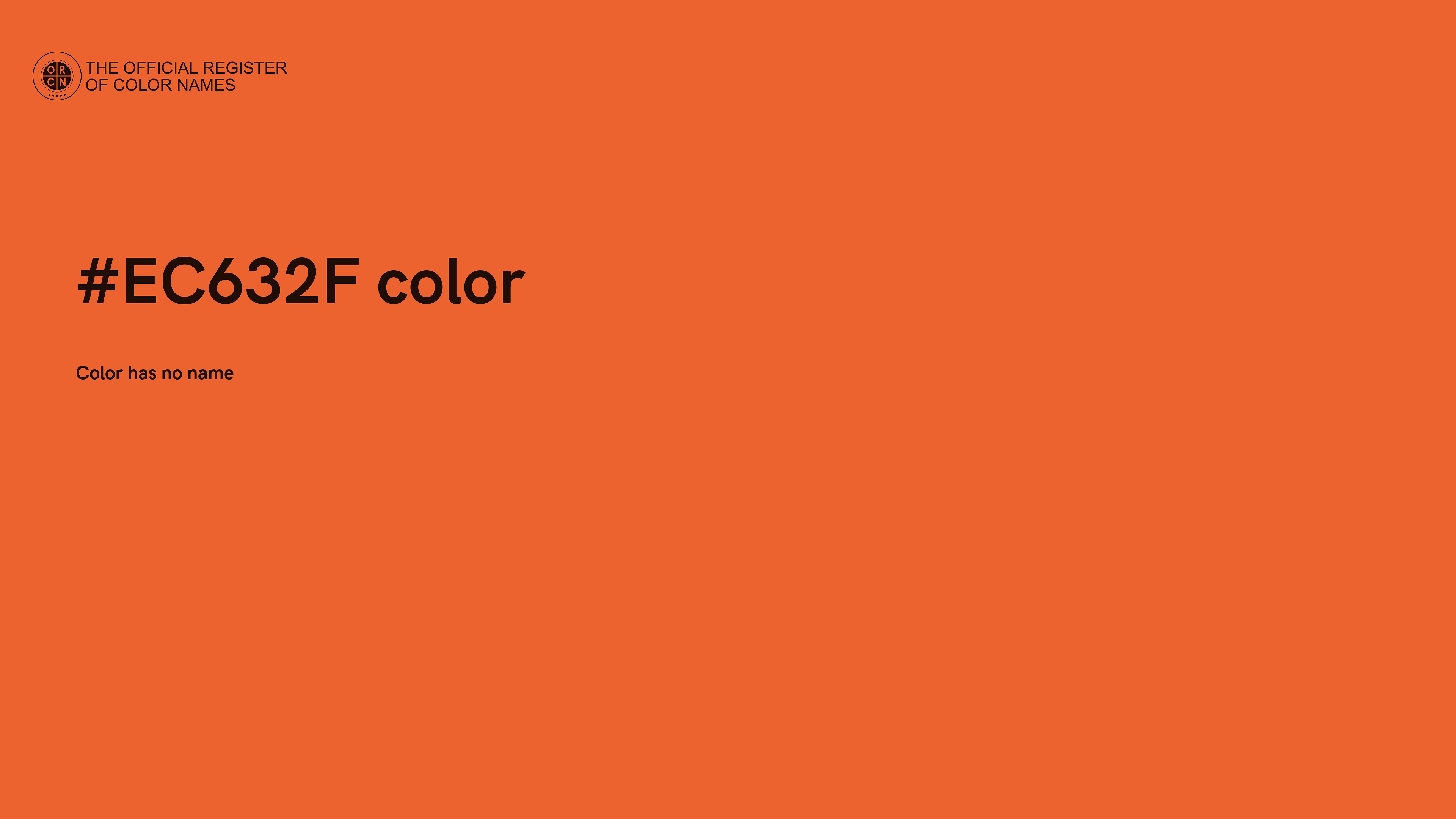 The digital color HEX #EC632F belongs to the Orange Color Family featuring High Saturation (Saturation Family) and Light (Brightness Family).