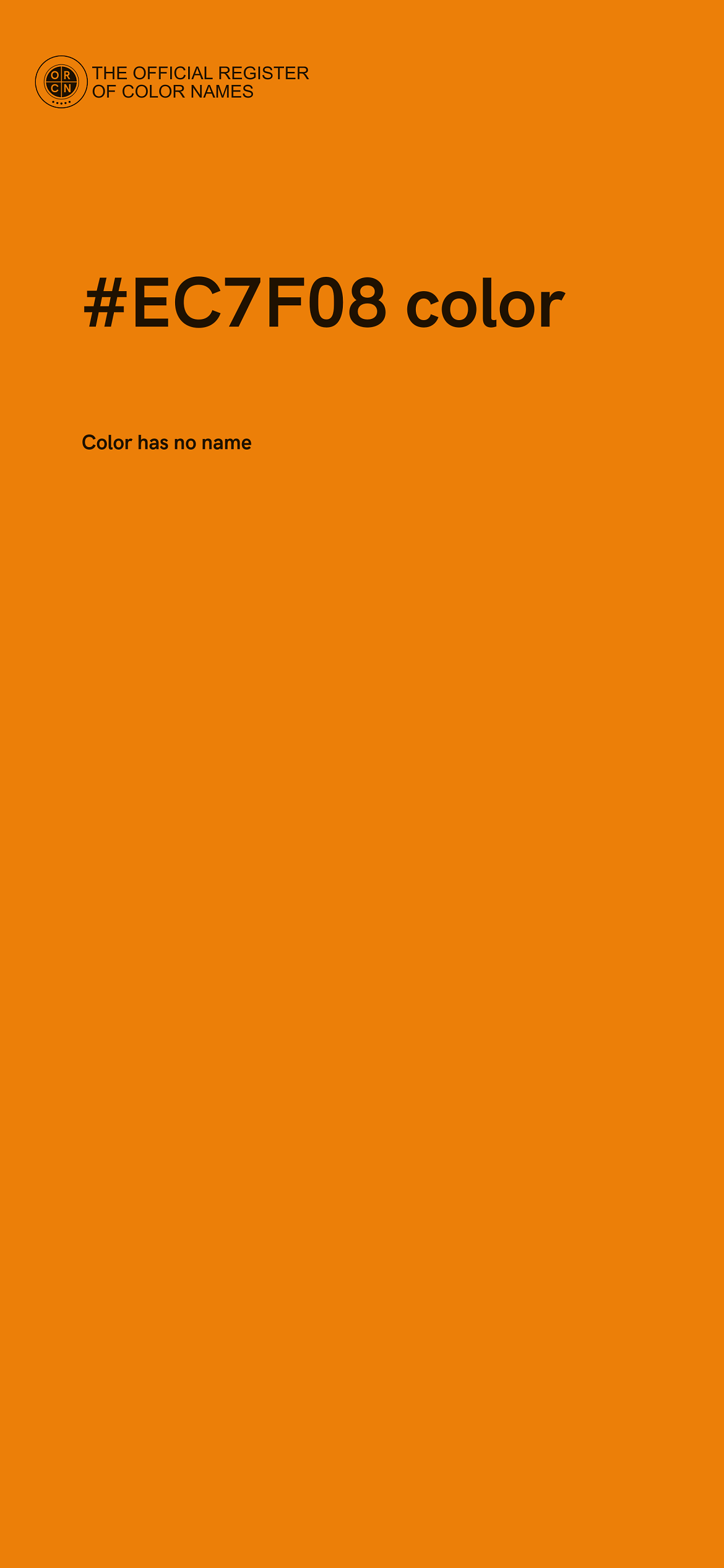 The digital color HEX #EC7F08 belongs to the Orange Color Family featuring Full Saturation (Saturation Family) and Light (Brightness Family).