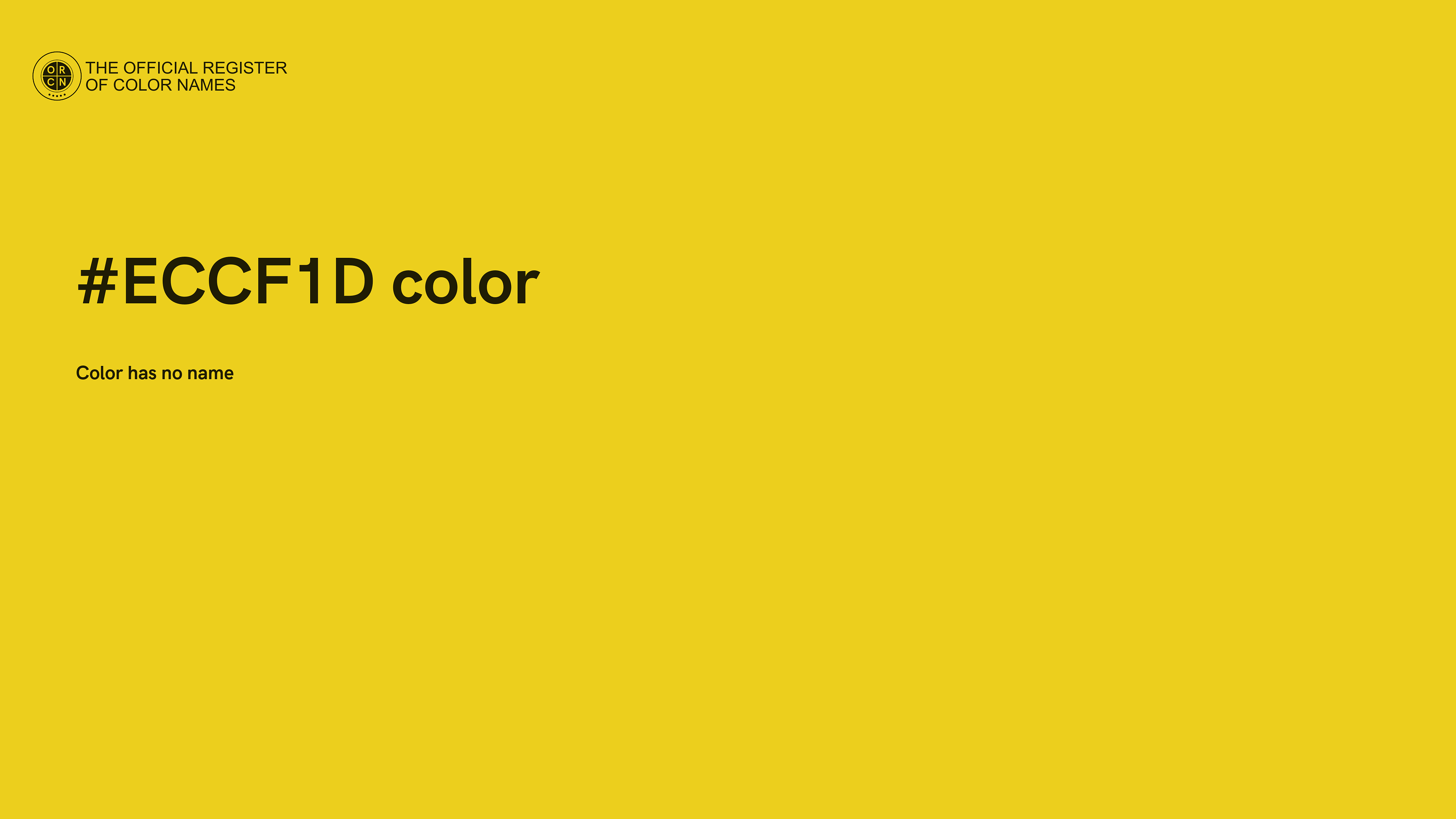 The digital color HEX #ECCF1D belongs to the Yellow Color Family featuring High Saturation (Saturation Family) and Light (Brightness Family).