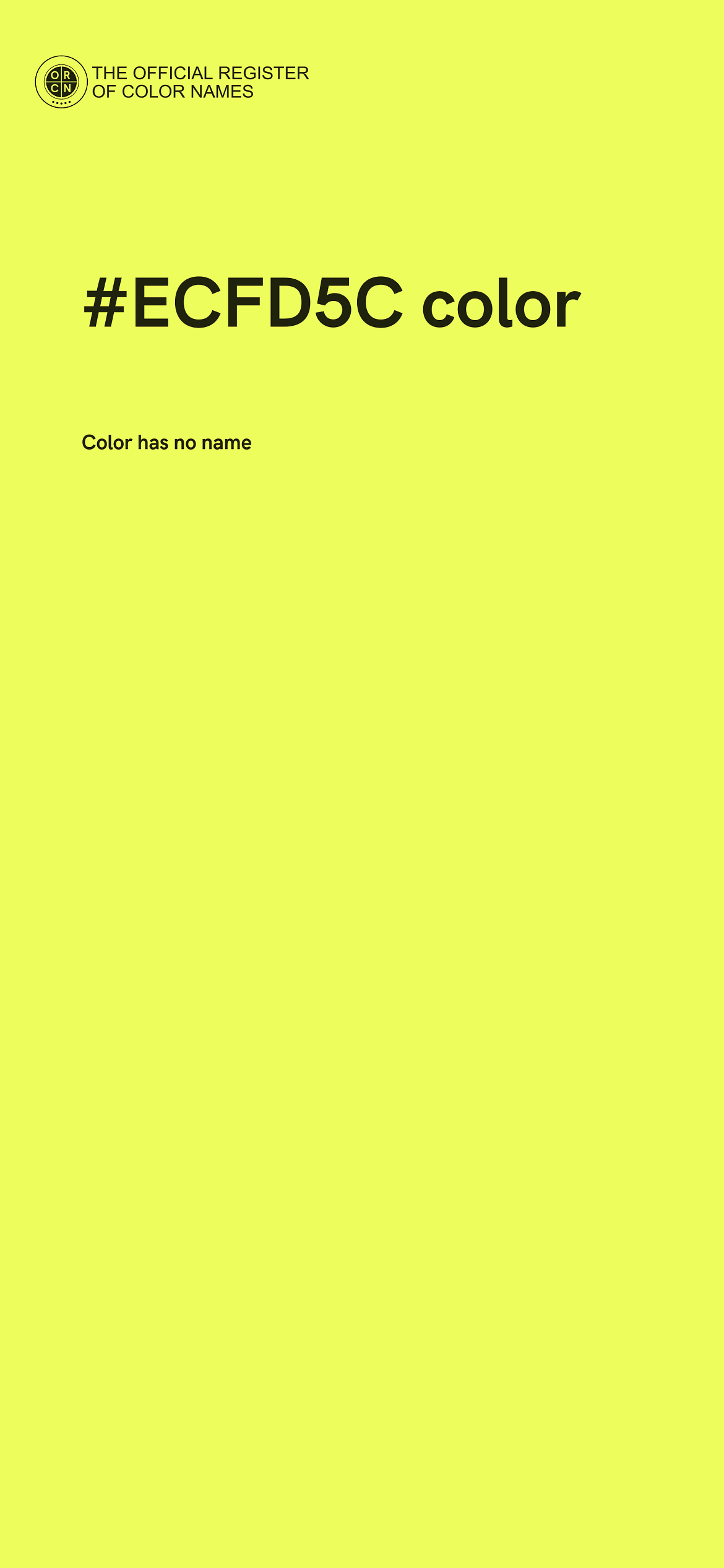 The digital color HEX #ECFD5C belongs to the Yellow Color Family featuring Full Saturation (Saturation Family) and Very Light (Brightness Family).