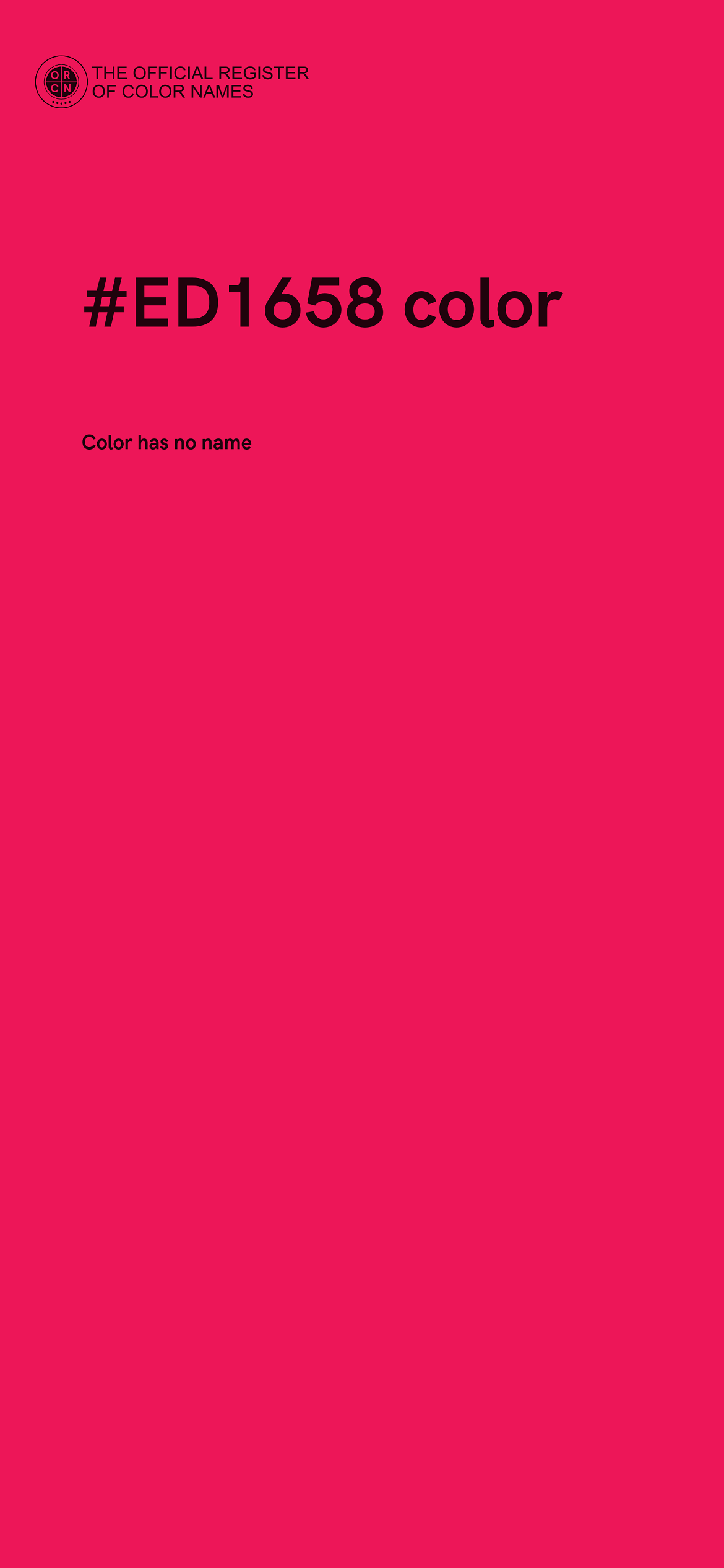 The digital color HEX #ED1658 belongs to the Rose Color Family featuring Full Saturation (Saturation Family) and Light (Brightness Family).