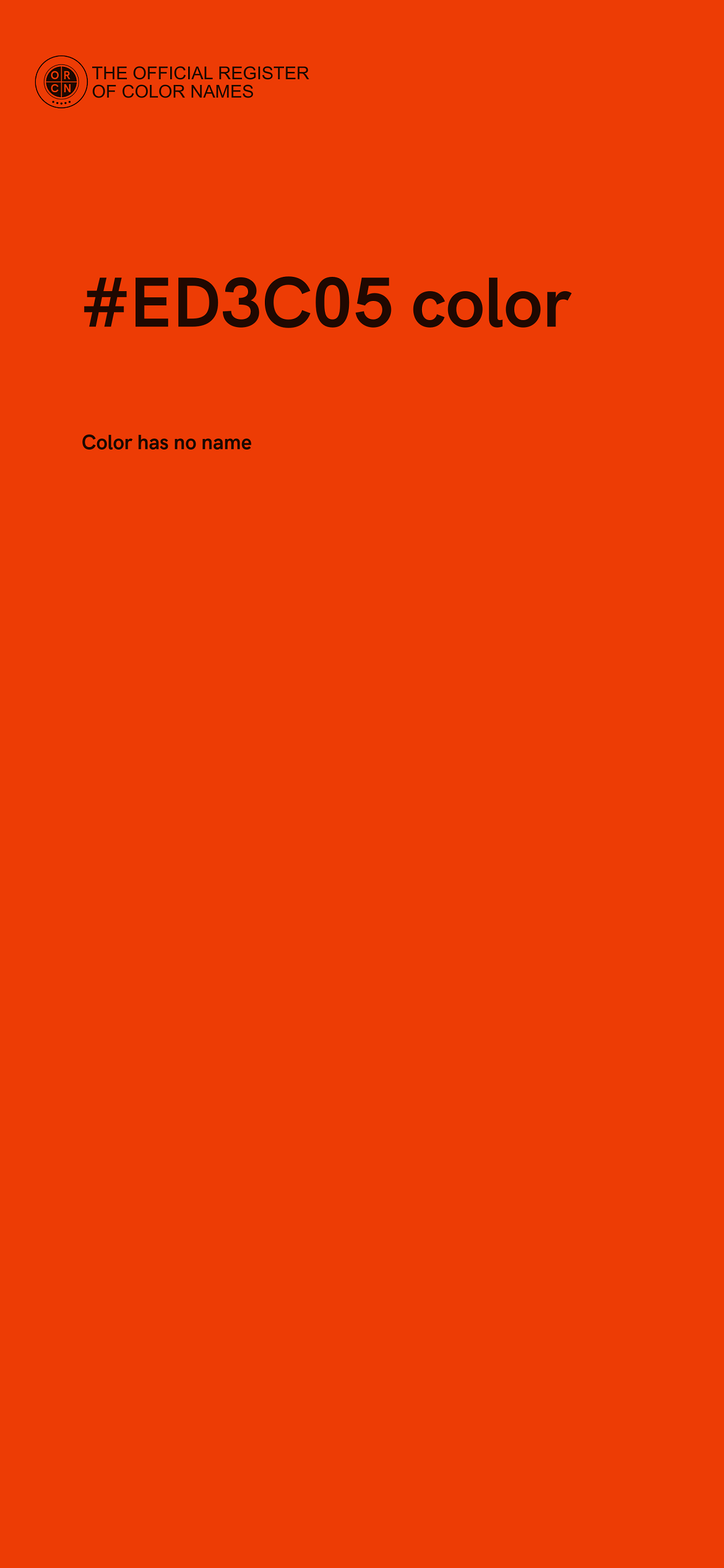 The digital color HEX #ED3C05 belongs to the Red Color Family featuring Full Saturation (Saturation Family) and Light (Brightness Family).