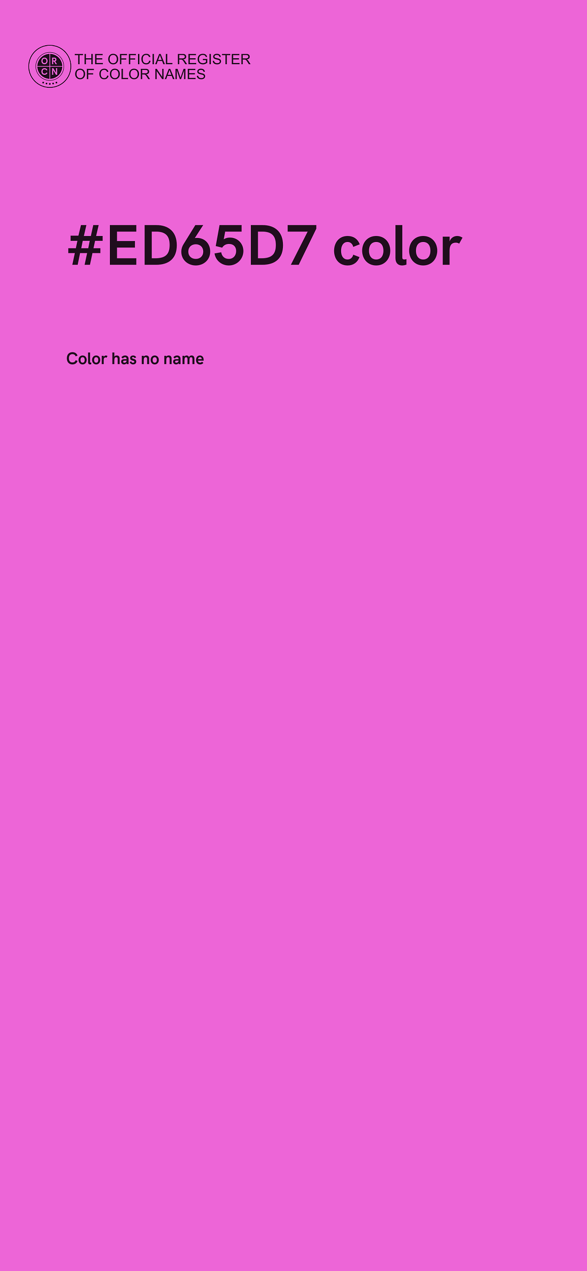 The digital color HEX #ED65D7 belongs to the Magenta Color Family featuring High Saturation (Saturation Family) and Very Light (Brightness Family).