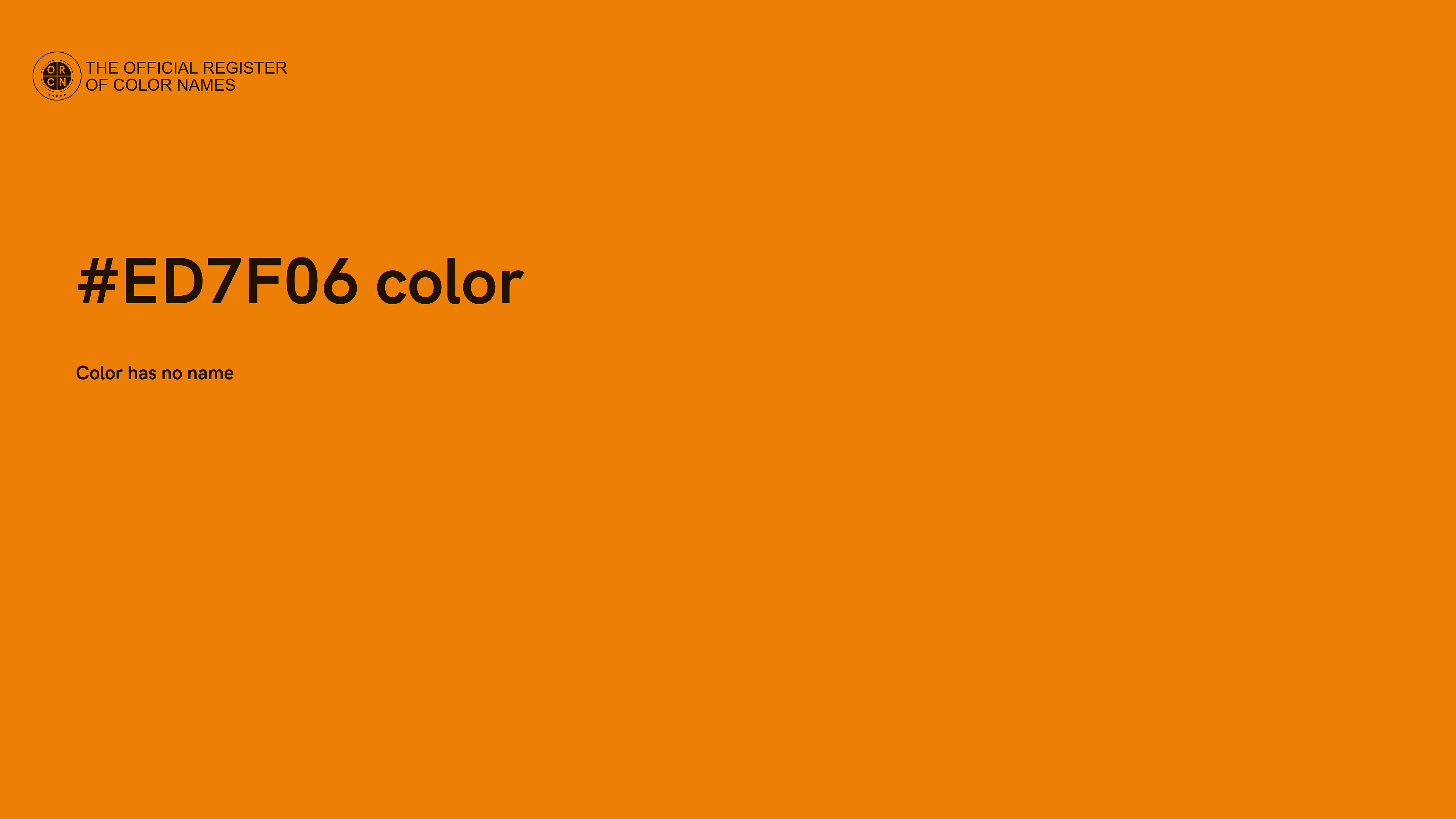 The digital color HEX #ED7F06 belongs to the Orange Color Family featuring Full Saturation (Saturation Family) and Light (Brightness Family).