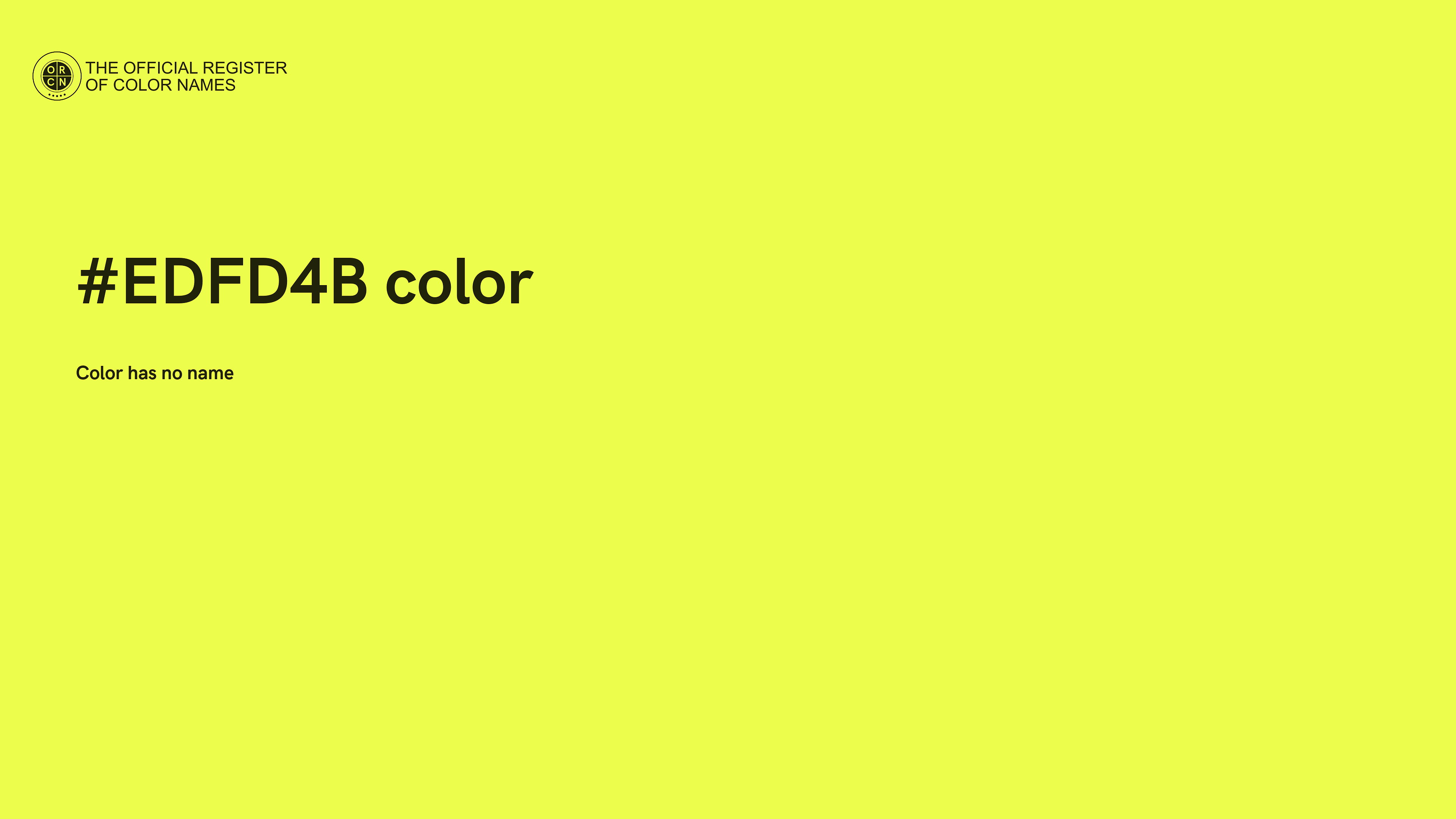 The digital color HEX #EDFD4B belongs to the Yellow Color Family featuring Full Saturation (Saturation Family) and Very Light (Brightness Family).