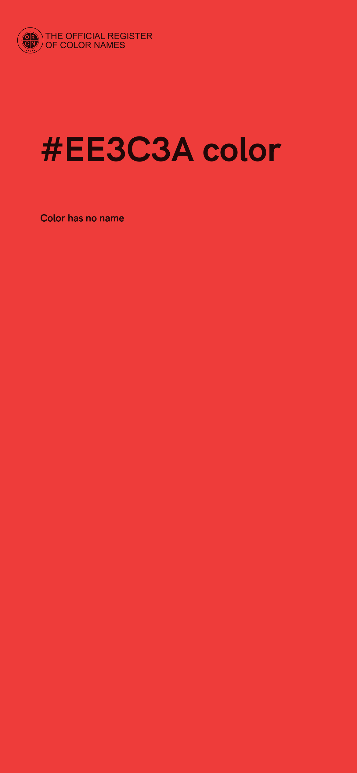 The digital color HEX #EE3C3A belongs to the Red Color Family featuring High Saturation (Saturation Family) and Light (Brightness Family).