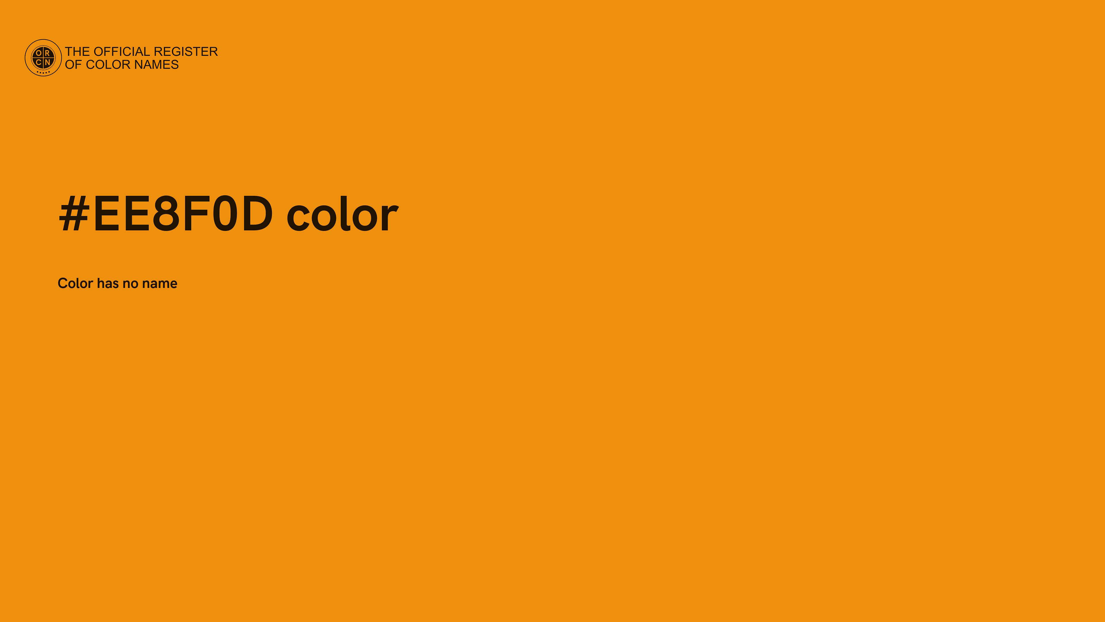 The digital color HEX #EE8F0D belongs to the Orange Color Family featuring Full Saturation (Saturation Family) and Light (Brightness Family).