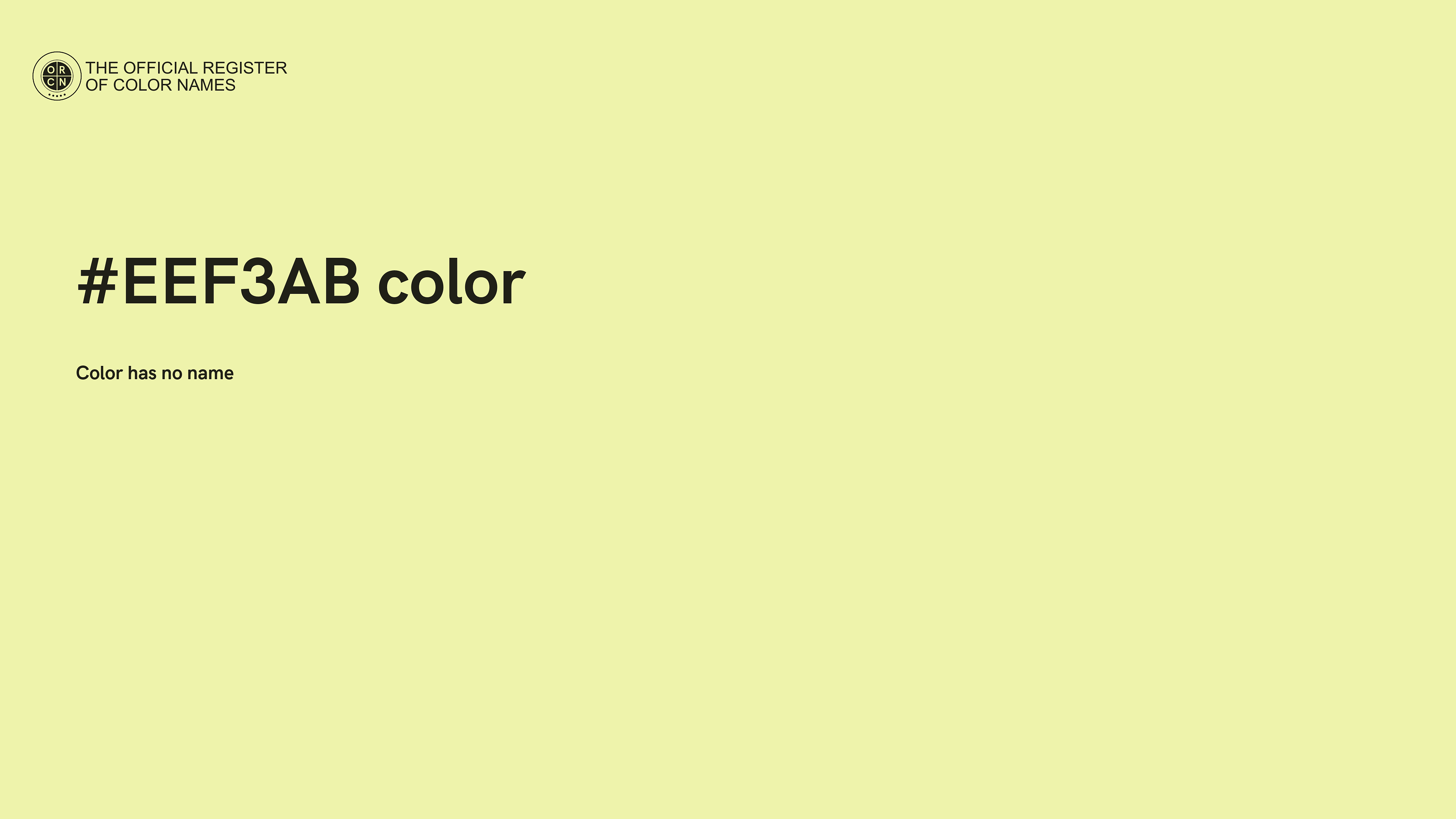 The digital color HEX #EEF3AB belongs to the Yellow Color Family featuring High Saturation (Saturation Family) and Very Light (Brightness Family).