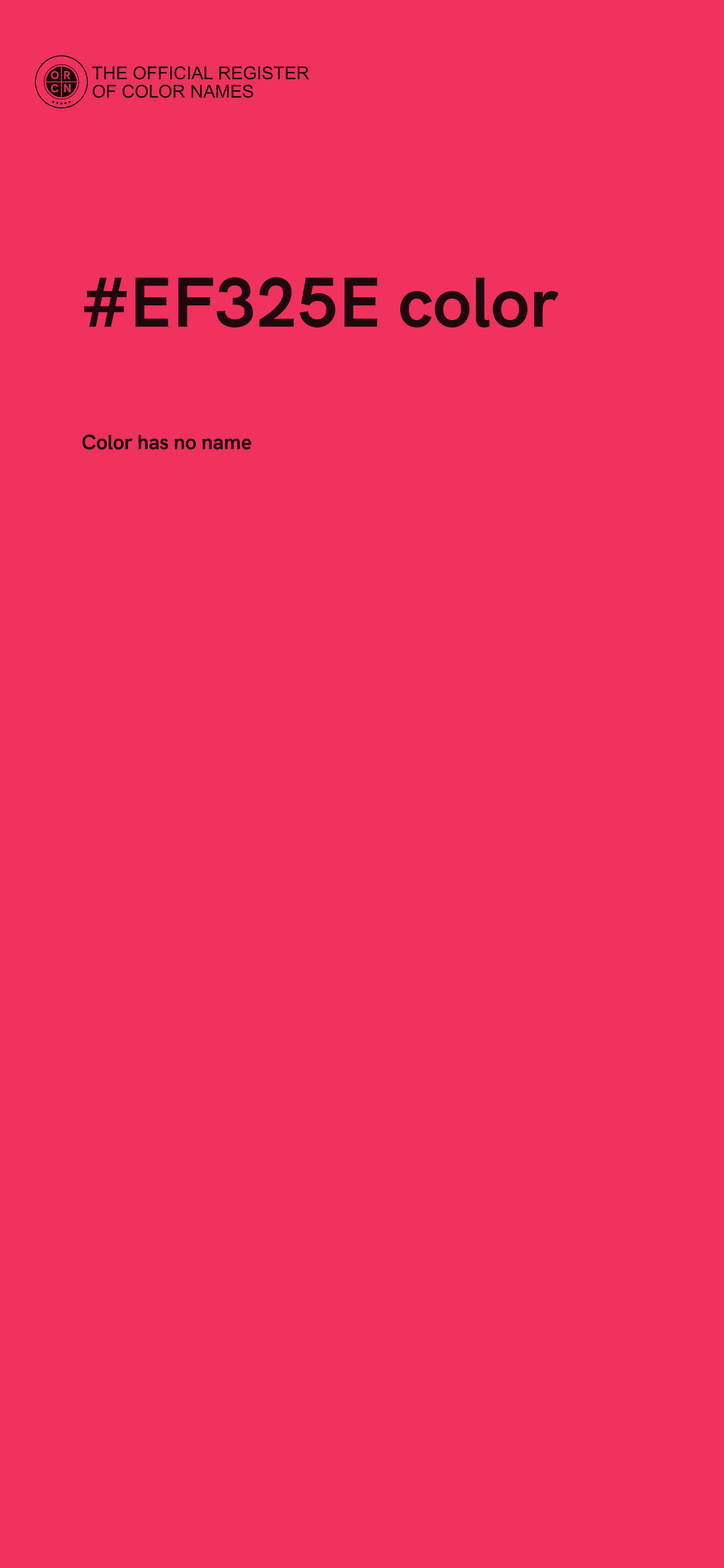 The digital color HEX #EF325E belongs to the Red Color Family featuring Full Saturation (Saturation Family) and Light (Brightness Family).