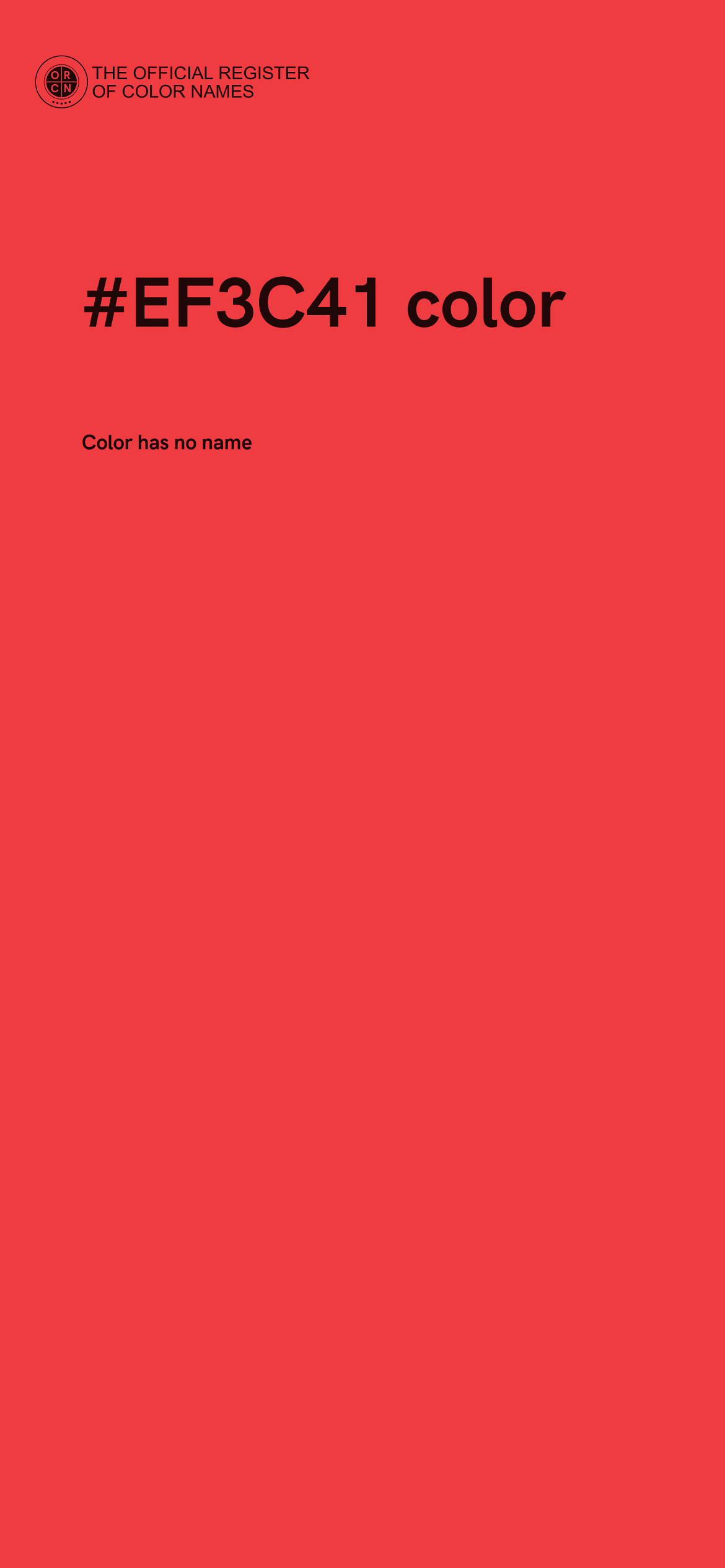 The digital color HEX #EF3C41 belongs to the Red Color Family featuring Full Saturation (Saturation Family) and Light (Brightness Family).