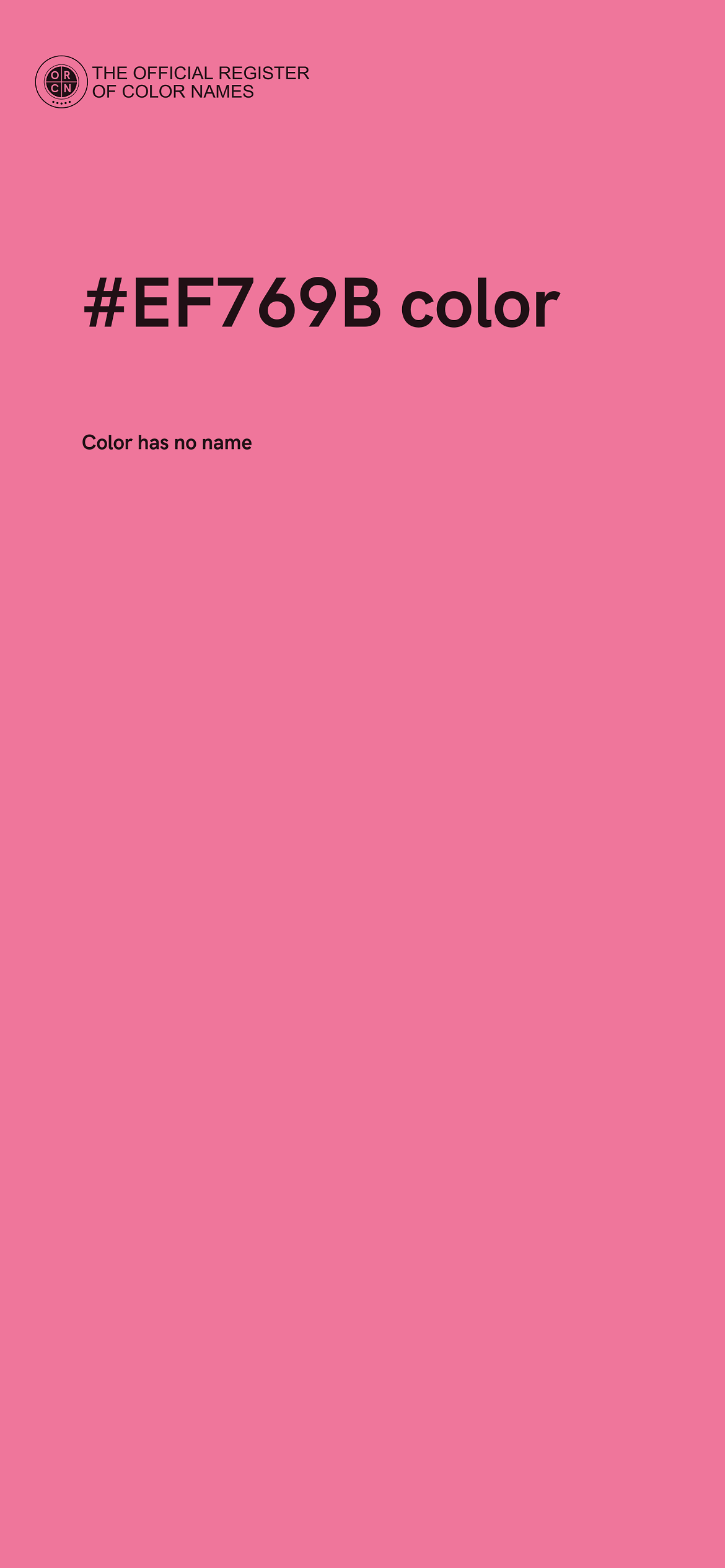 For printing in non digital world, #EF769B is represented in CMYK as 0 Cyan, 47 Magenta, 33 Yellow, and 6 Black (Key) (C:0 M:47 Y:33 K:6).