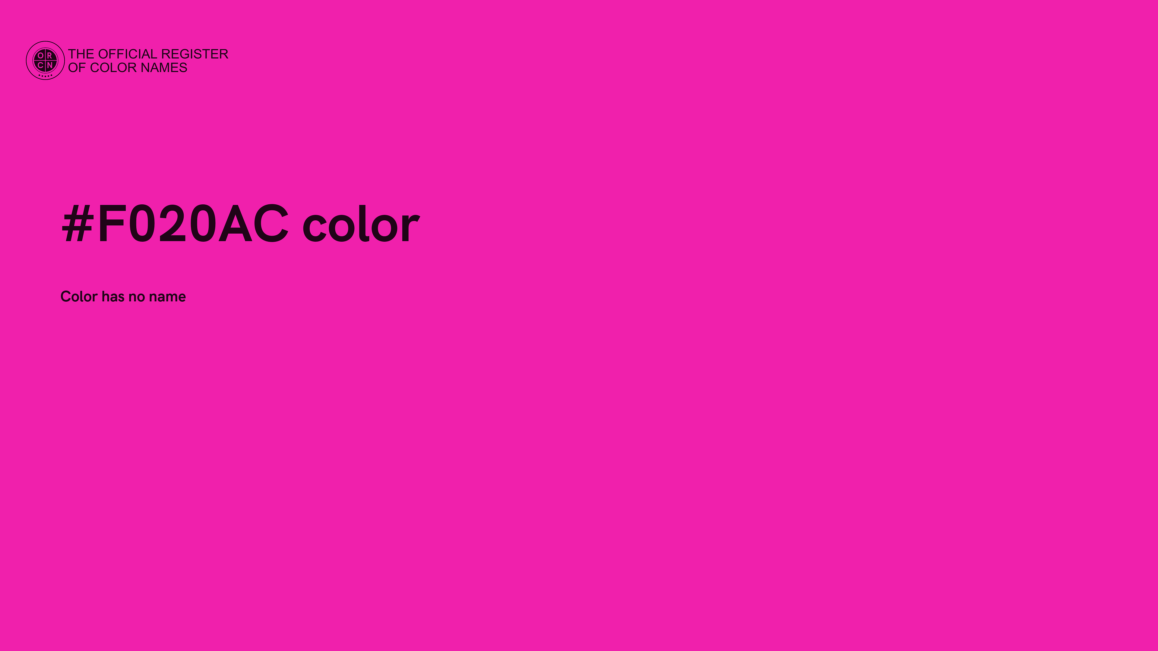 For printing in non digital world, #F020AC is represented in CMYK as 0 Cyan, 82 Magenta, 27 Yellow, and 6 Black (Key) (C:0 M:82 Y:27 K:6).