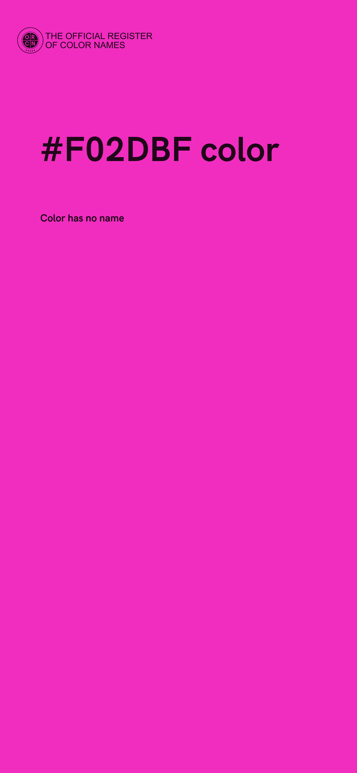 The digital color HEX #F02DBF belongs to the Rose Color Family featuring Full Saturation (Saturation Family) and Light (Brightness Family).