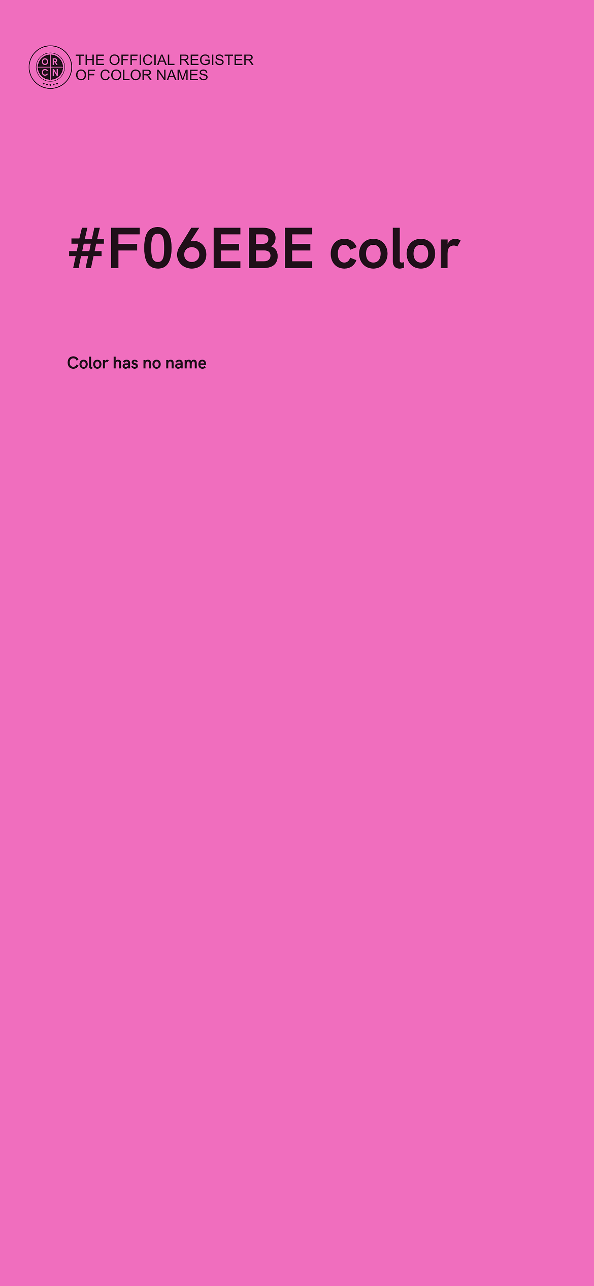 The digital color HEX #F06EBE belongs to the Rose Color Family featuring High Saturation (Saturation Family) and Very Light (Brightness Family).
