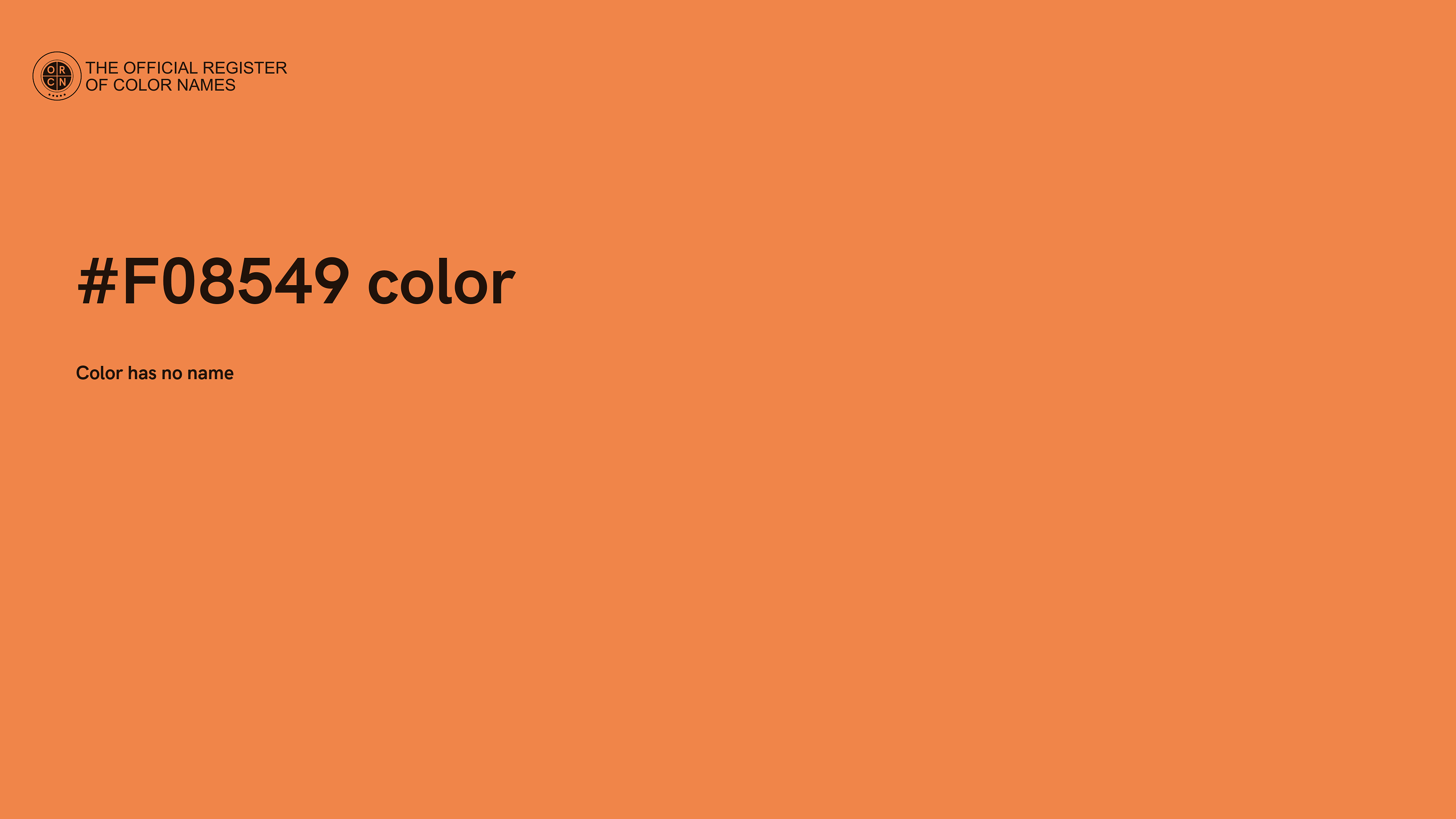 The digital color HEX #F08549 belongs to the Orange Color Family featuring Full Saturation (Saturation Family) and Very Light (Brightness Family).