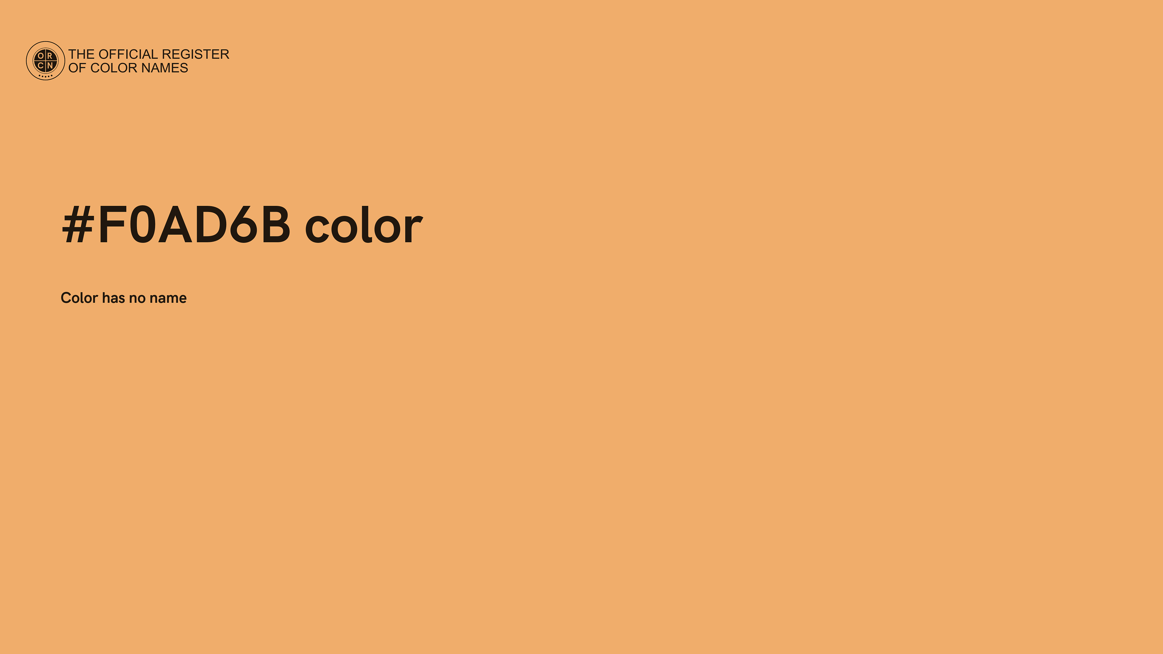 For printing in non digital world, #F0AD6B is represented in CMYK as 0 Cyan, 26 Magenta, 52 Yellow, and 6 Black (Key) (C:0 M:26 Y:52 K:6).
